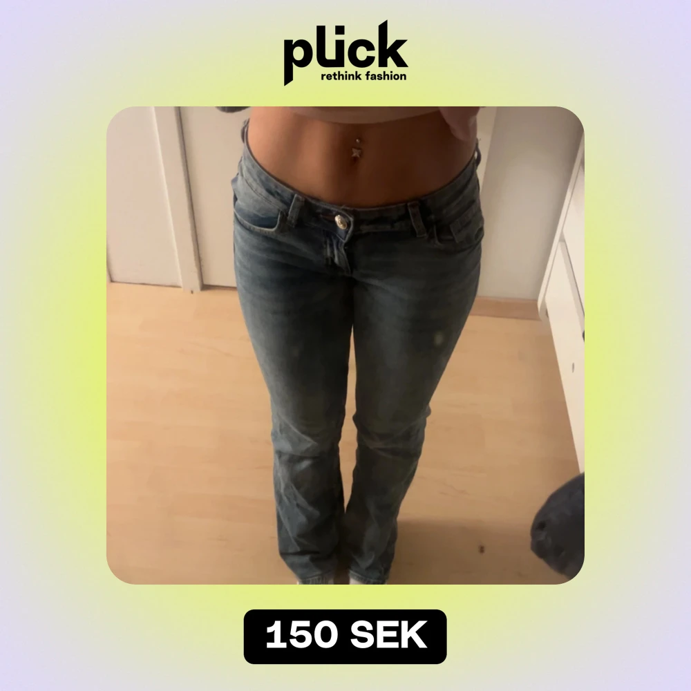 Skitsnygga lågmidjade jeans från hm som inte säljs längre, är i storlek 34 men formar sig efter kroppen så skulle säga att den passar 32-36