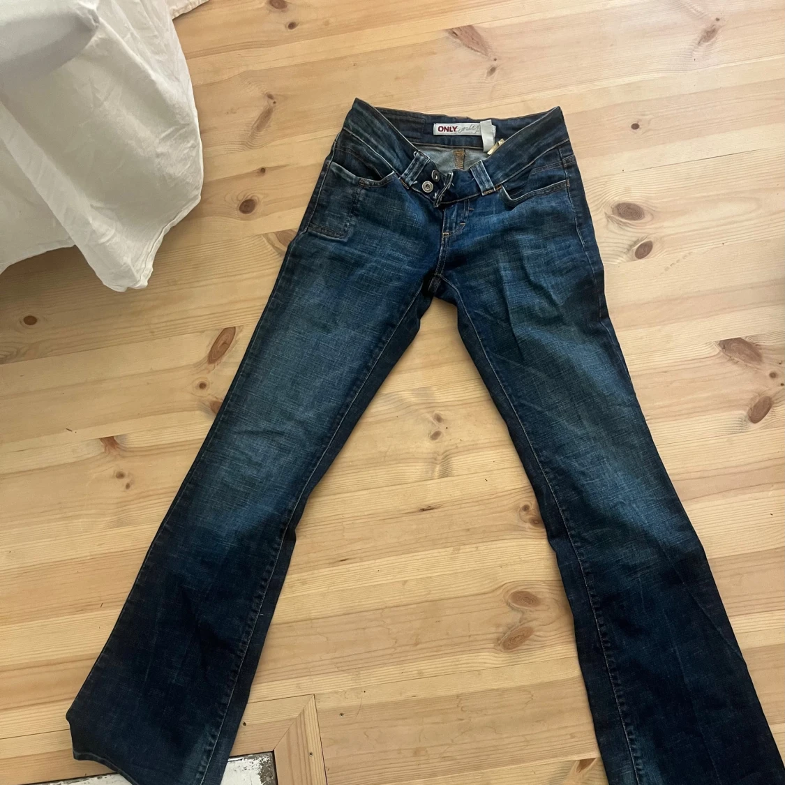 Jättefina Lågmidjade mörkblå jeans från only! Dom är i storlek xs/S och är långa på mig som är 170❤️❤️