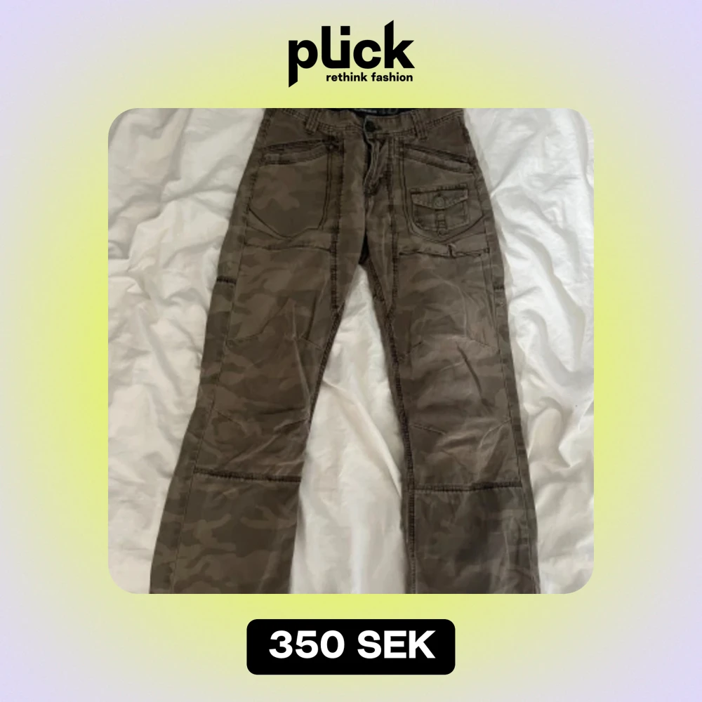 Lågmidjade camouflage byxor. Utsvängda ben. Knappt använda. Köparen står för frakt.