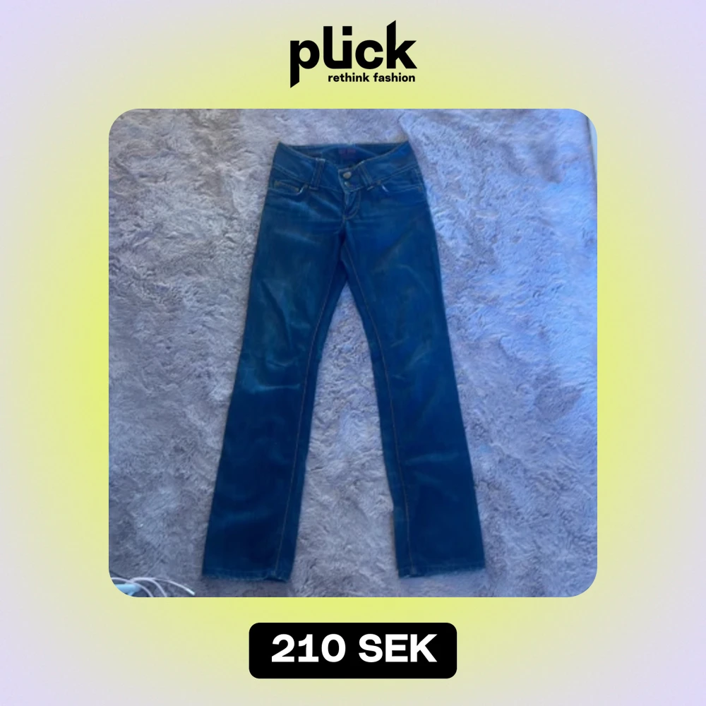 Fina lågmidjade jeans! Tyvärr har jag inga bilder på hur de sitter på eftersom att jag inte kan ha dom, men de är bootcut!! Innerbenet är 80cm och midjan rakt över är ca 37cm. 💞💞