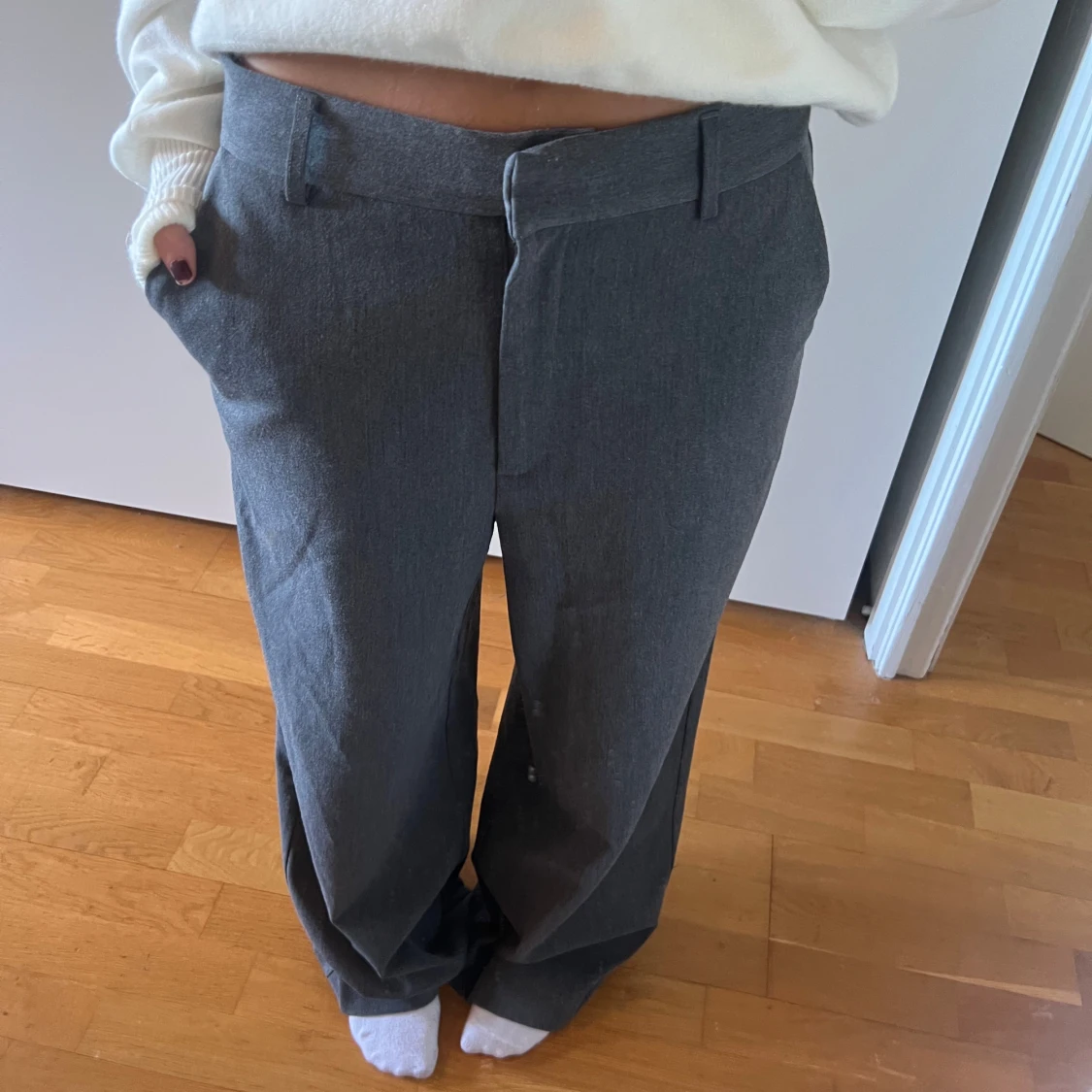 Väldigt baggy, modellen är högmidjade! Storlek 38, midjemått ca 78, innerbenslängd ca 74🫧