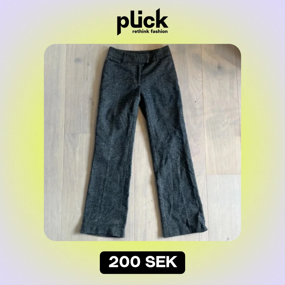Superfina gråa lågmidjade kostymbyxor! Lite noppriga på ett fåtal ställen men annars mycket bra skick. Midjemått: 73 cm, Innerbenslängd: 77.5 cm. Skriv om du har fler frågor🫶