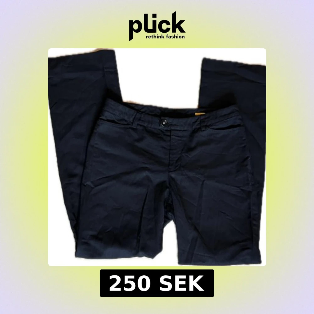 Snygga svarta kostymbyxor. Lågdmidjade. Köpta på Vinted men ej använda pga för stora. Midjemått: 37,5cm Innerbenslängd: 75cm