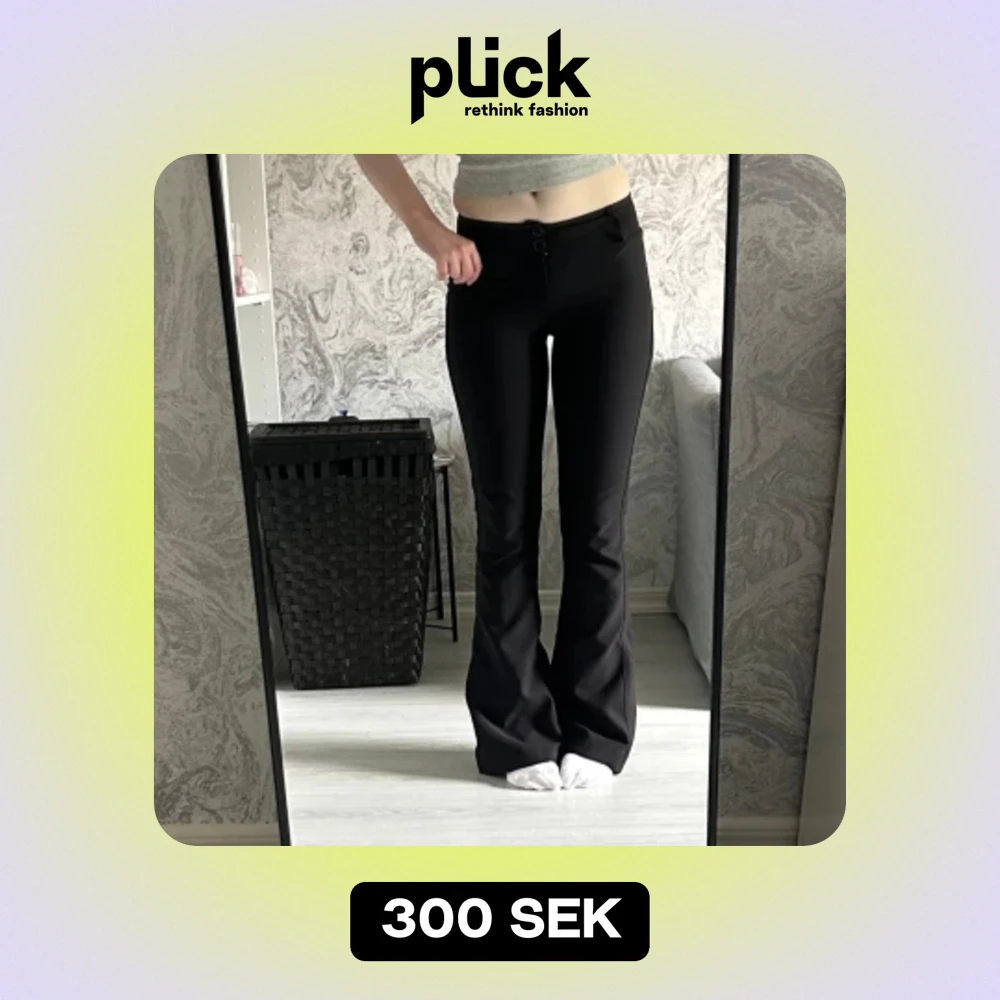 Säljer de här fina svarta låg bootcut kostymbyxorna från Gina Tricot. Endast använda en gång💞Bilderna är från Gina Tricots hemsida! Om du har några frågor är det bara att fråga!🫶❤️
