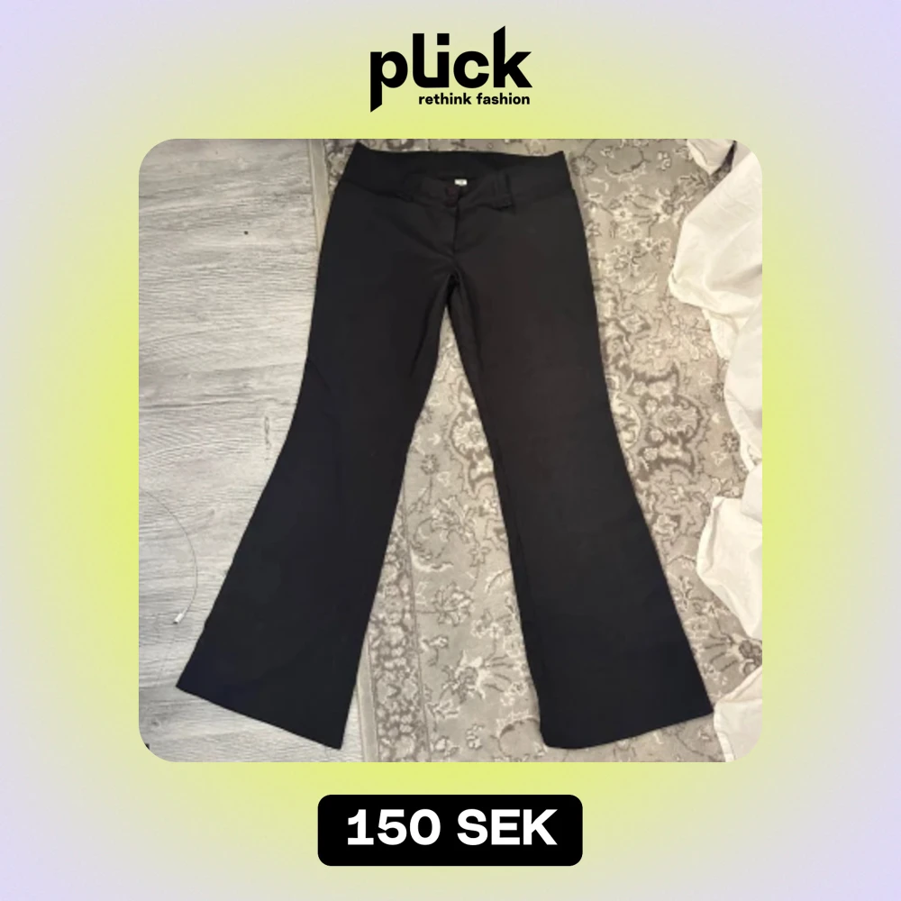Skiiiit snygga kostymbyxor som tyvärr är försmå för mig. De är lågmidjade med bootcut. Det finns synliga täcken på användning (bild 3) dock så är dem tydligare på bilden än i verkligheten. Innerbenslängd 77cm, 37 tvärs över midjan❣️