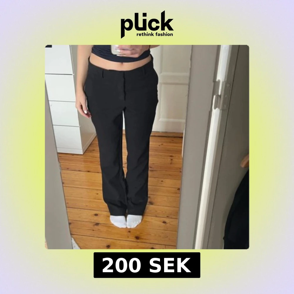Snygga svarta kostymbyxor med en klassisk passform. De har en rak stil och är perfekta för en stilren look. Byxorna har en low waist och stängs med dragkedja och knapp.
