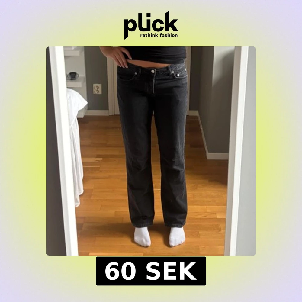 Säljer ett par svarta raka jeans från Lager157 med klassisk femficksdesign och knappgylf. Modellen heter Icon. Jeansen har en lowwaist passform och är tillverkade i mjukt bomullstyg. Perfekta för en chill och stilren look.