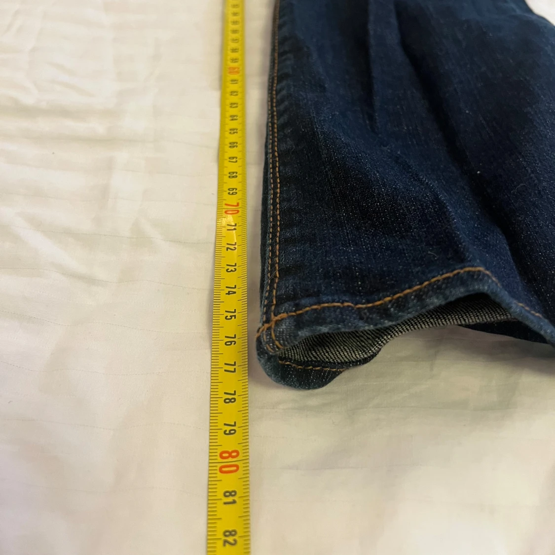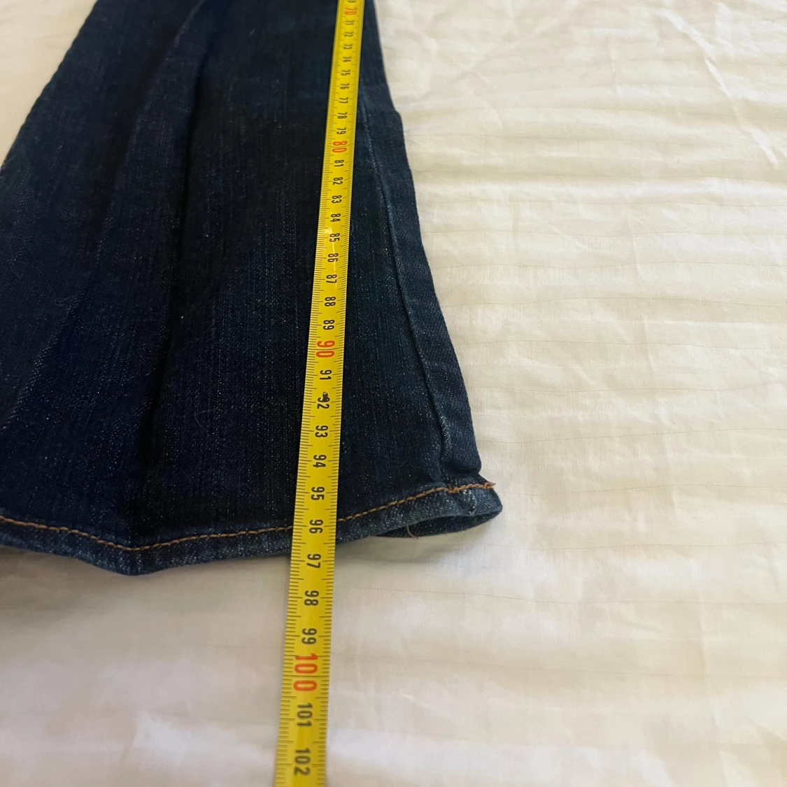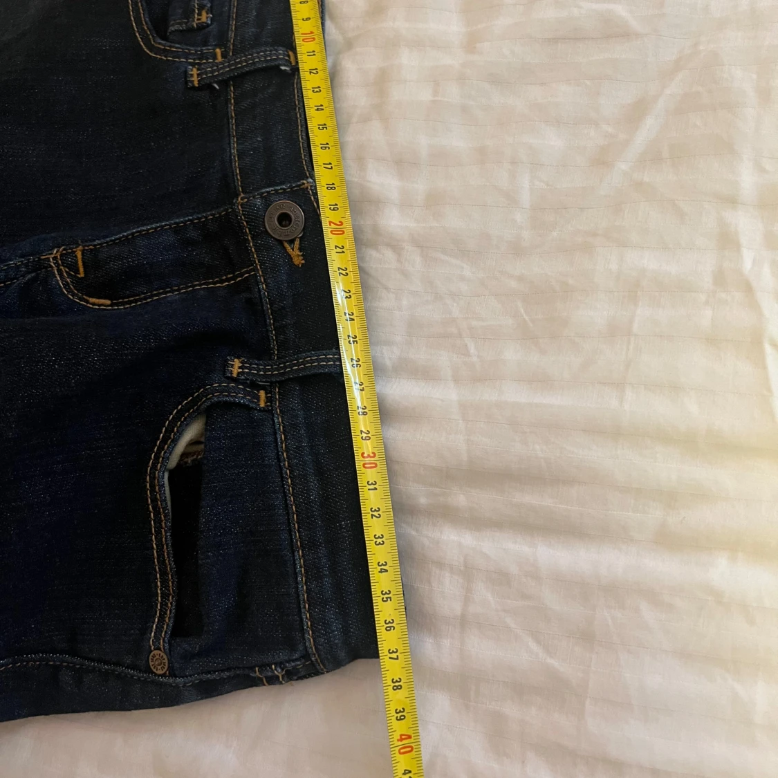 Såå fina mörkblå Lågmidjade utsvängda jeans från abercrombie i nytt skick! Midjemått, innerbensmått och ytterbensmått finns bland bilderna. Grenmått: 19cm ❣️