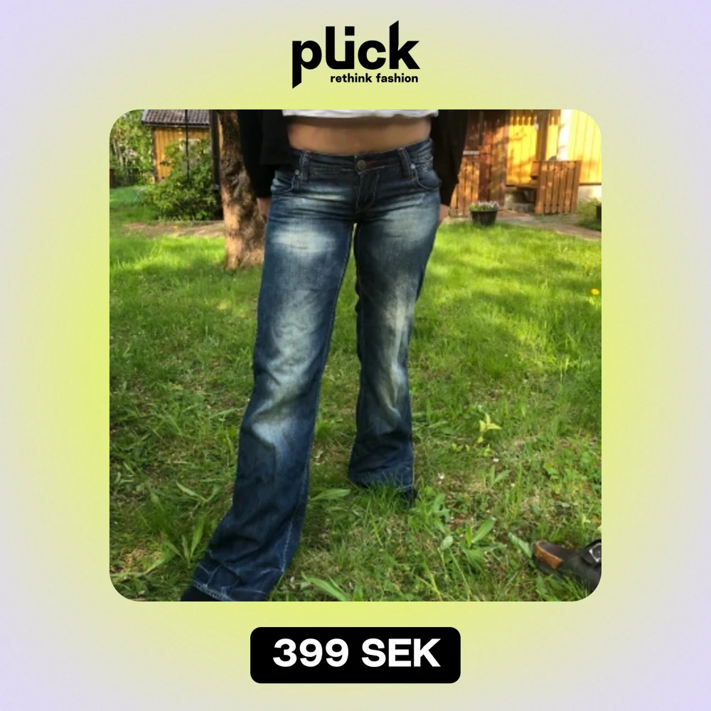 Jätte snygga lågmidjade mörkblå bootcut/utsvängda jeans med coola fickor och broderi detaljer från märket CROSS. Storleken står inte men passar som S/XS, pris går att diskutera ❤ Mått: Midja- 35cm Innerbenslängd- 83cm Total längd- 100cm
