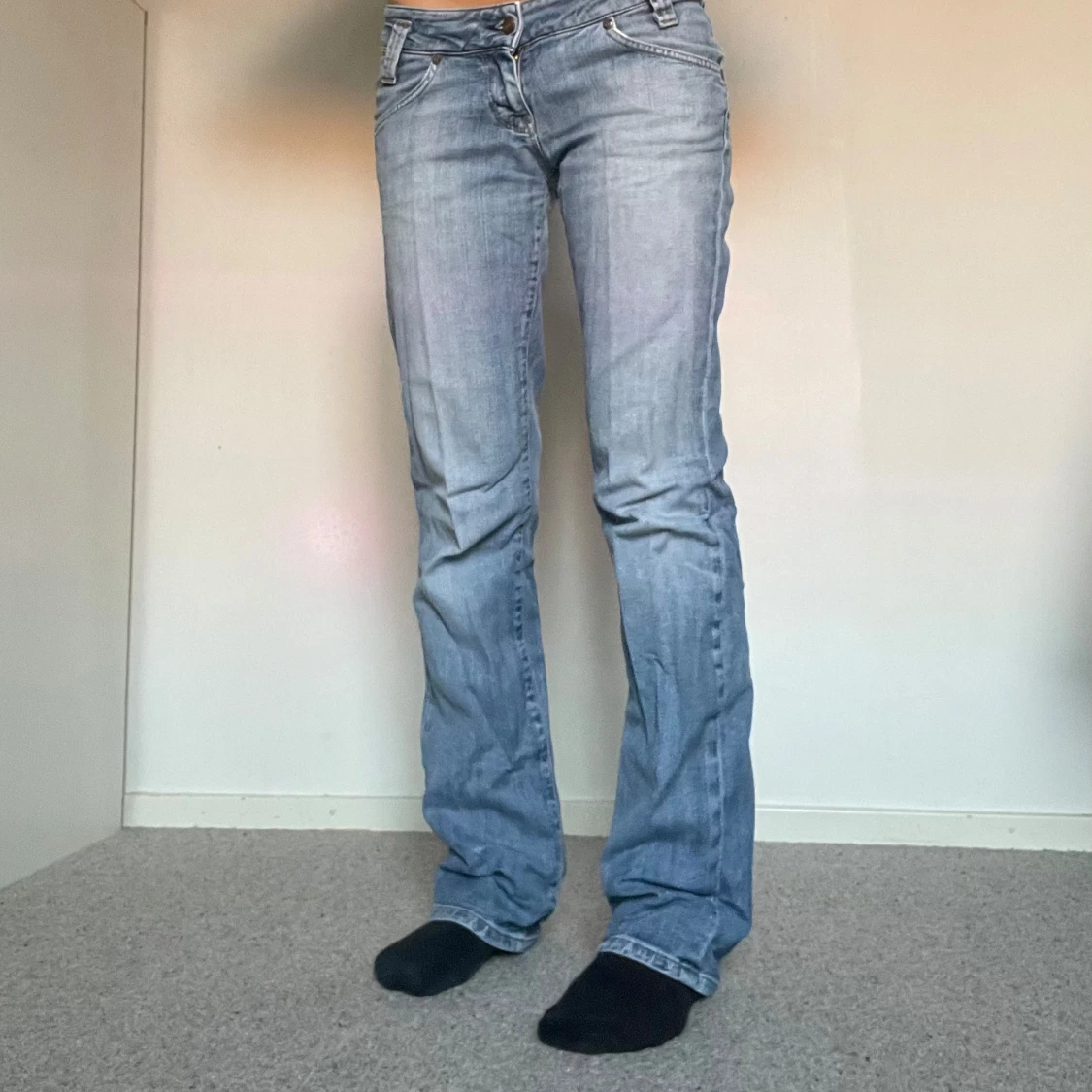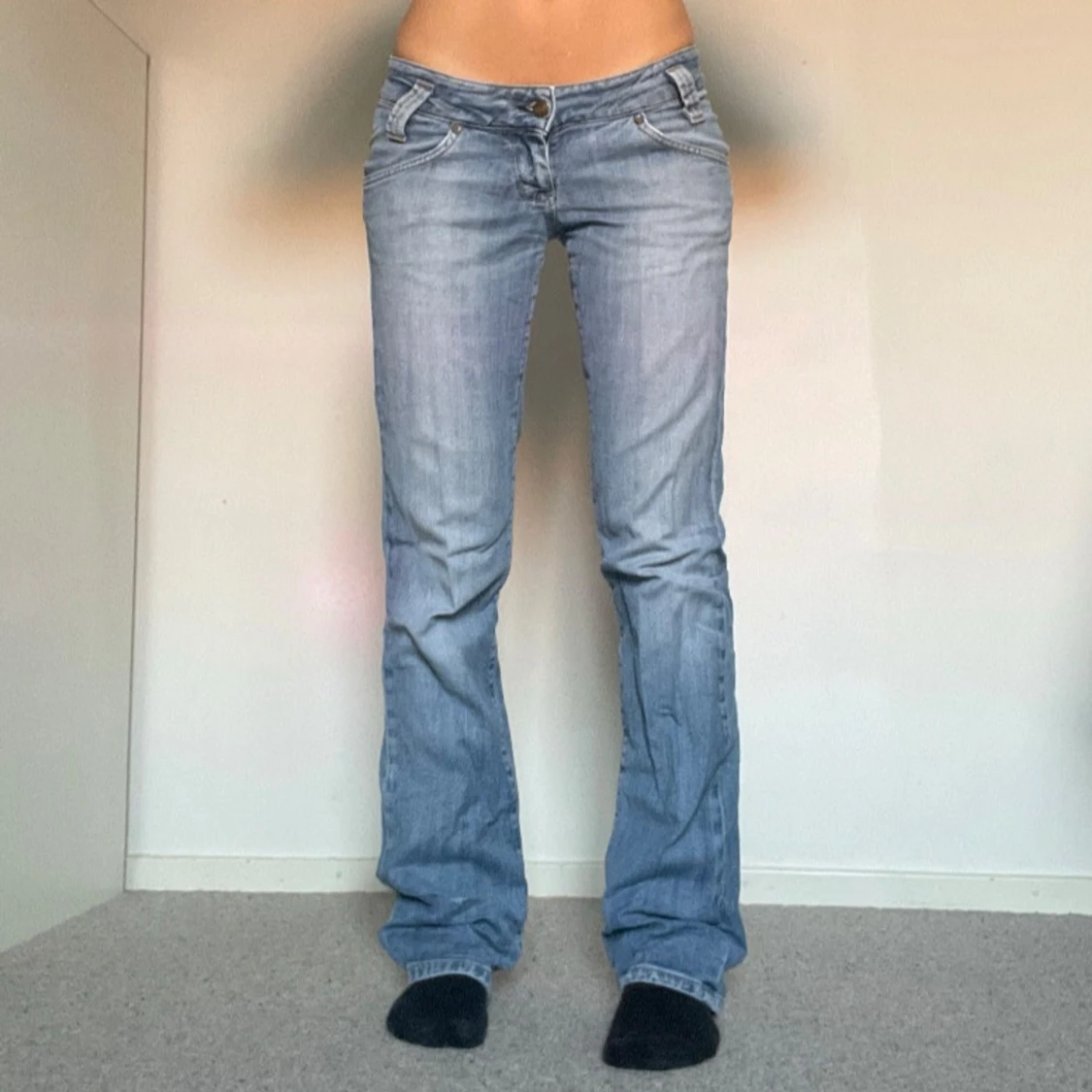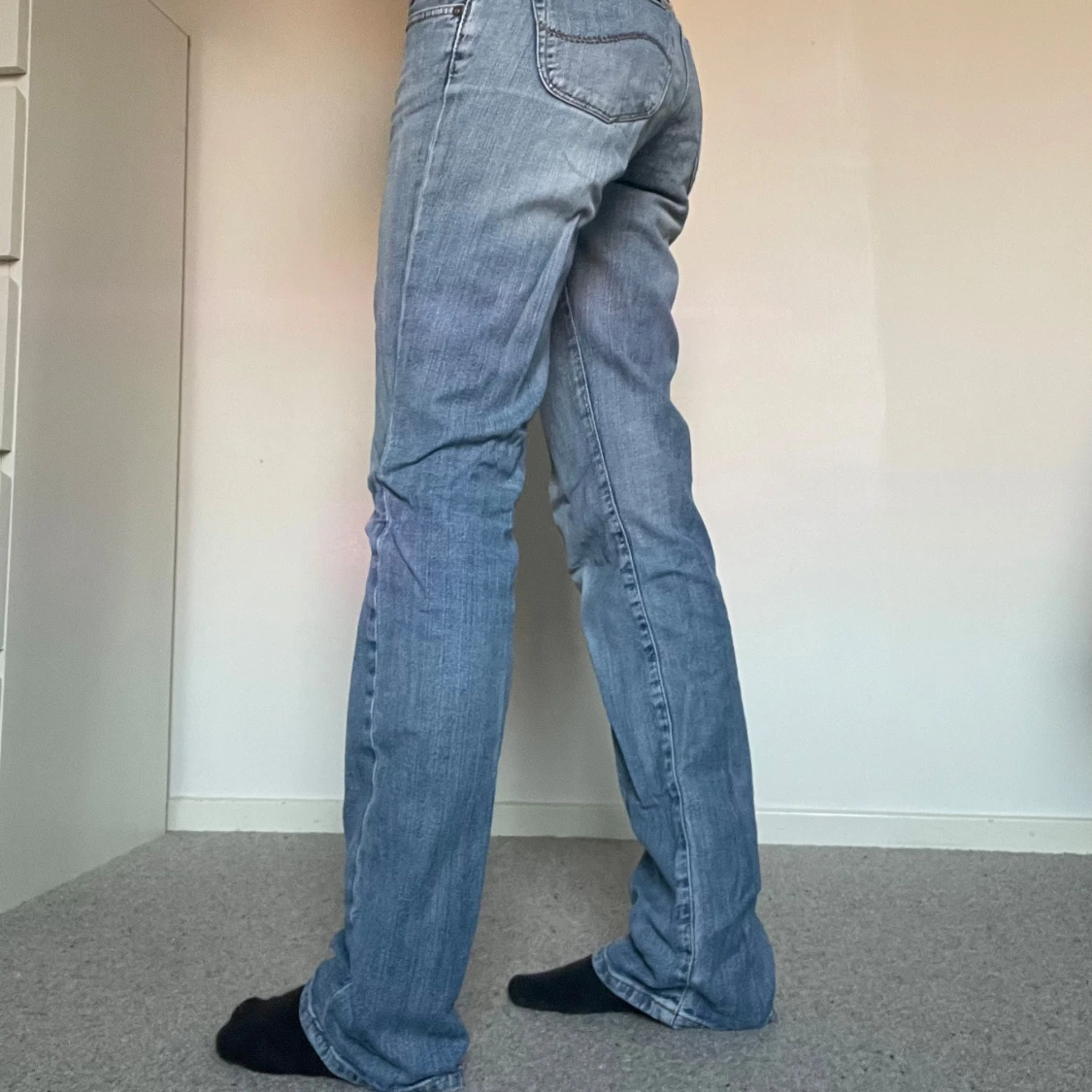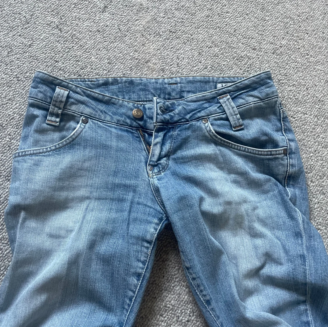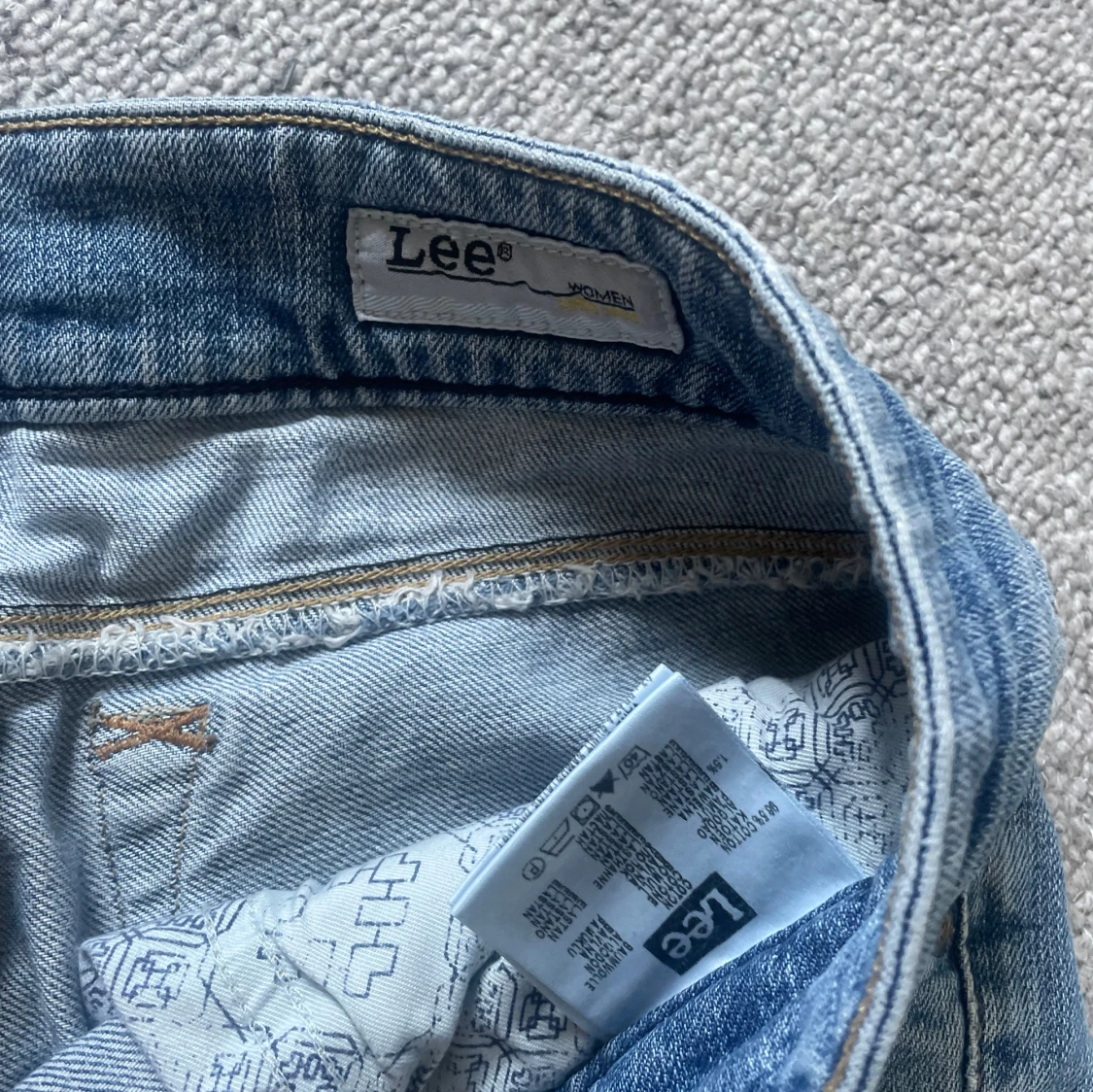 Så fina jeans från Lee i jättefin ljusblå färg. De är lågmidjade och boutcut. Väldigt bra skick. Står ingen storlek men de passar mig med xs/s. Midjemåttet tvärs över är ca 37, innerbenslängden är 80cm och grenmåttet är ca 17cm. Skriv vid frågor!💗