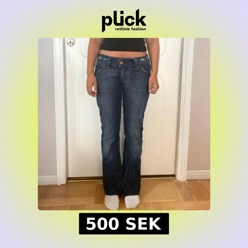 Snygga lågmidjade Levis jeans från 2000 talet. Mörkblå tvätt med bootcut passform, inte utsydda! Andra bilden visar färgen bättre! Rosa kontrastsömn i midjan. Inga defekter. Hade jättegärna behållit men passar ej (min kompis på bild).💘💘 Står ingen storlek men skulle gissa runt storlek 28 💕