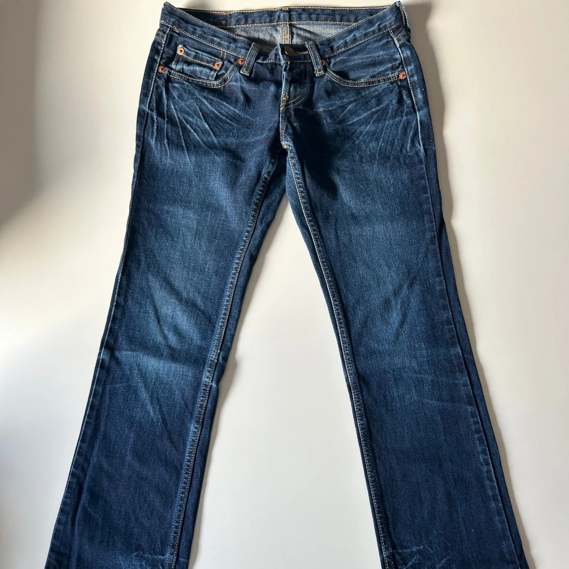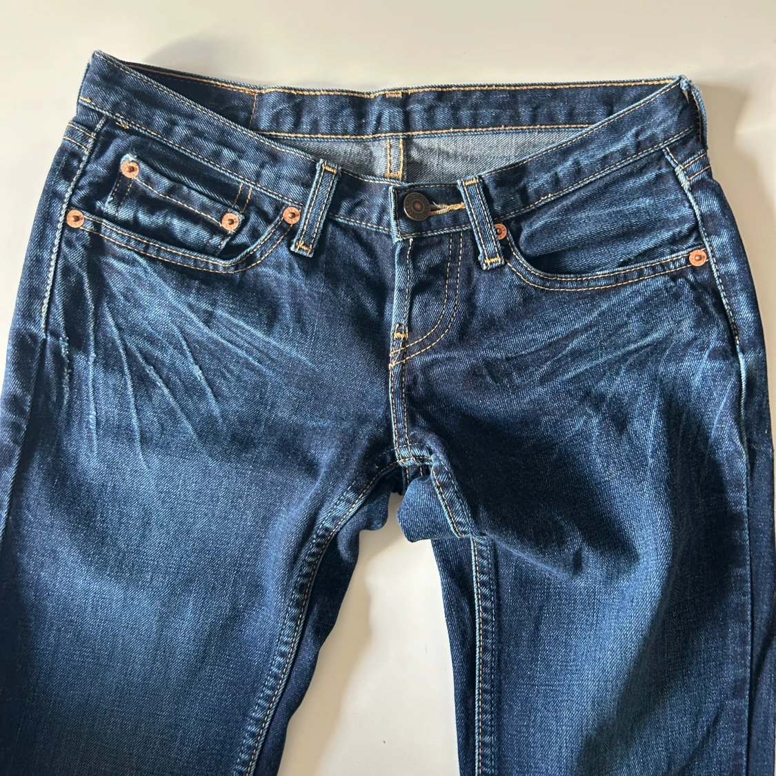 Superfina lågmidjade jeans från levis. Innerbenslängd: 78,5cm. Grenhöjd (fram): 16,5cm. Midjemått (mätt tvärsöver): 35cm. Vid frågor eller behov av fler bilder är det bara att skriva. Priset är inte hugget i sten och går att diskutera.💘
