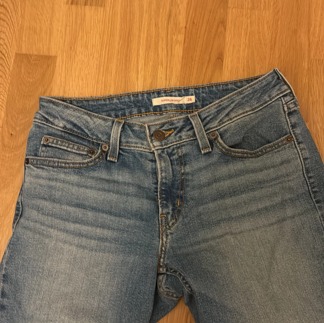 Säljer dessa äkta Levis jeans i strl 26 dem är lågmidjade och bootcut dem är i nyskick och Max använda 5-10 gånger säljer pga att dem inte kommer till användning💕
