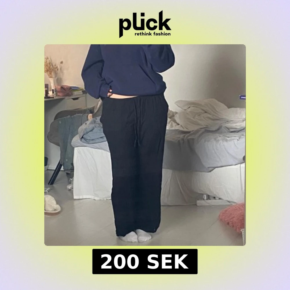 Säljer ett par svarta linnebyxor som är lågmidjade. Köpte dem på HM och de är knappt använda. Storleken är S, inga defekter (fläcken på bild 3 är en fläck på spegeln, ej byxorna!!)