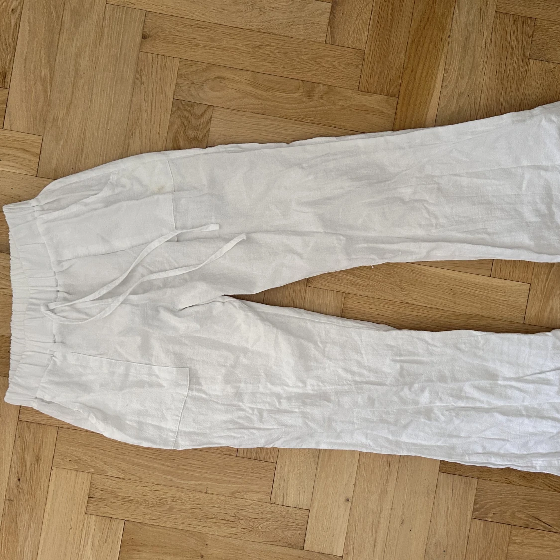 Säljer dom hör lågmidjade vita linnebyxorna som bara har kommit till användning 1 gång och är för korta på mig💓💓 köpare står för frakten❤️❤️