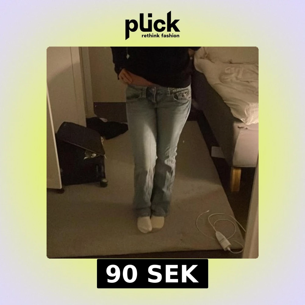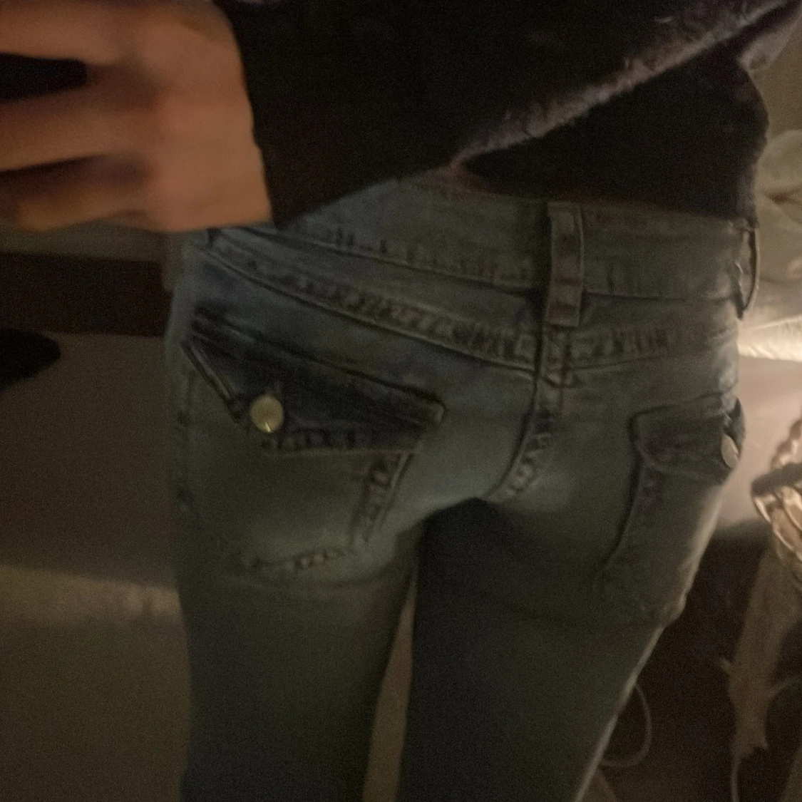 Super lågmidjade blåa jeans från gina, med knapp fickor 💗