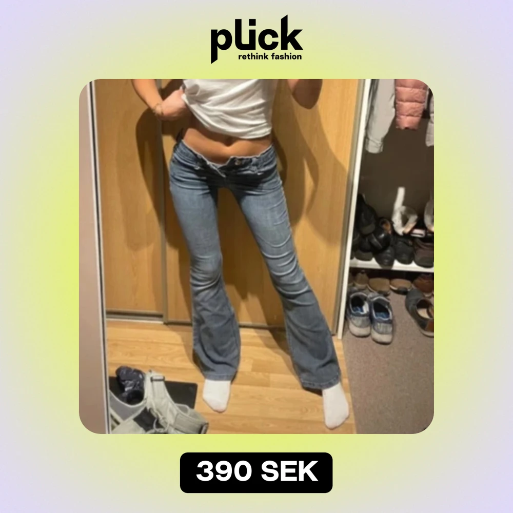 Säljer dessa jättefina lågmidjade jeans pga av att de inte passade mig, därmed lånade bilder från tjejen jag köpte ifrån 💕💕Innerbenslängd är 79cm och midjemåttet rakt över var 34 cm Hör av er vid funderingar!😇