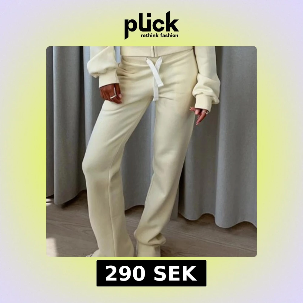 Populära Lågmidjade mjukisbyxor från Gina i en snygg ljusgul färg storlek S passar i längden om man är runt 160 använd en gång