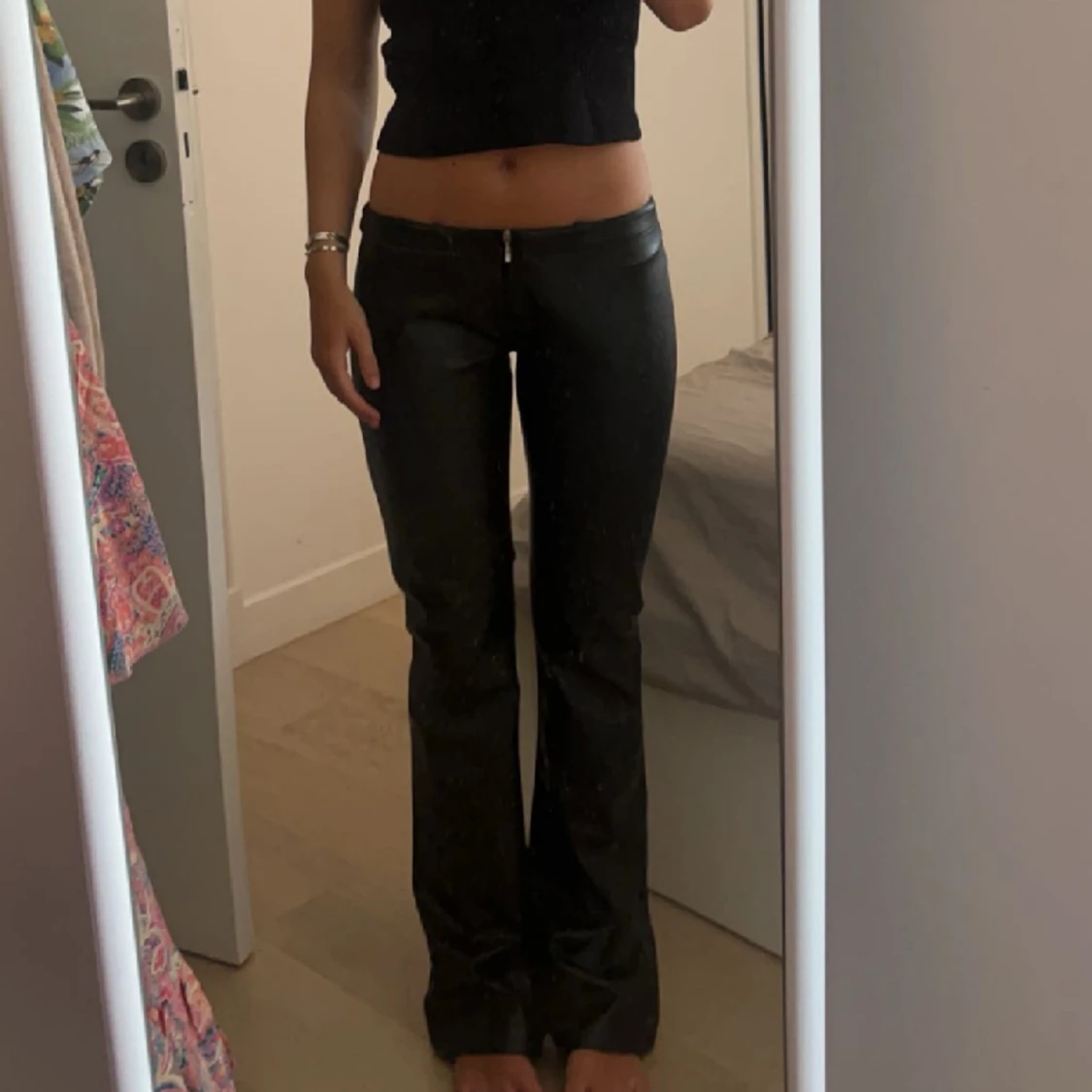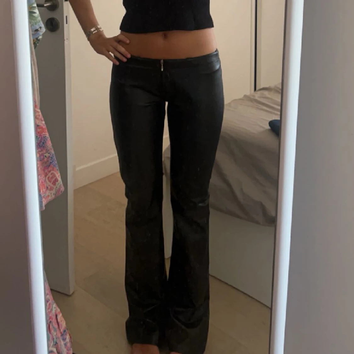 Lågmidjade skinnbyxor från Miss Sixty🩷🖤Köpta i Italien i somras, midjemått 38cm och innerbenslängd 80cm
