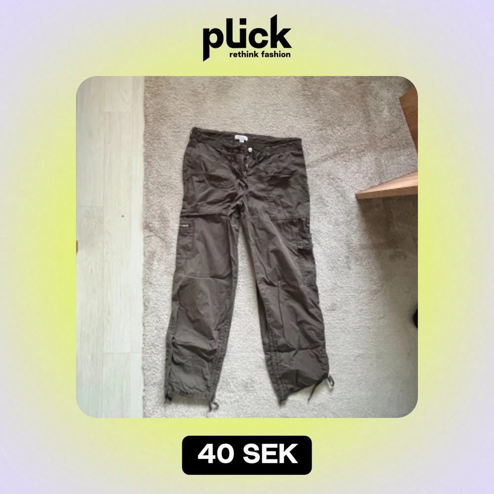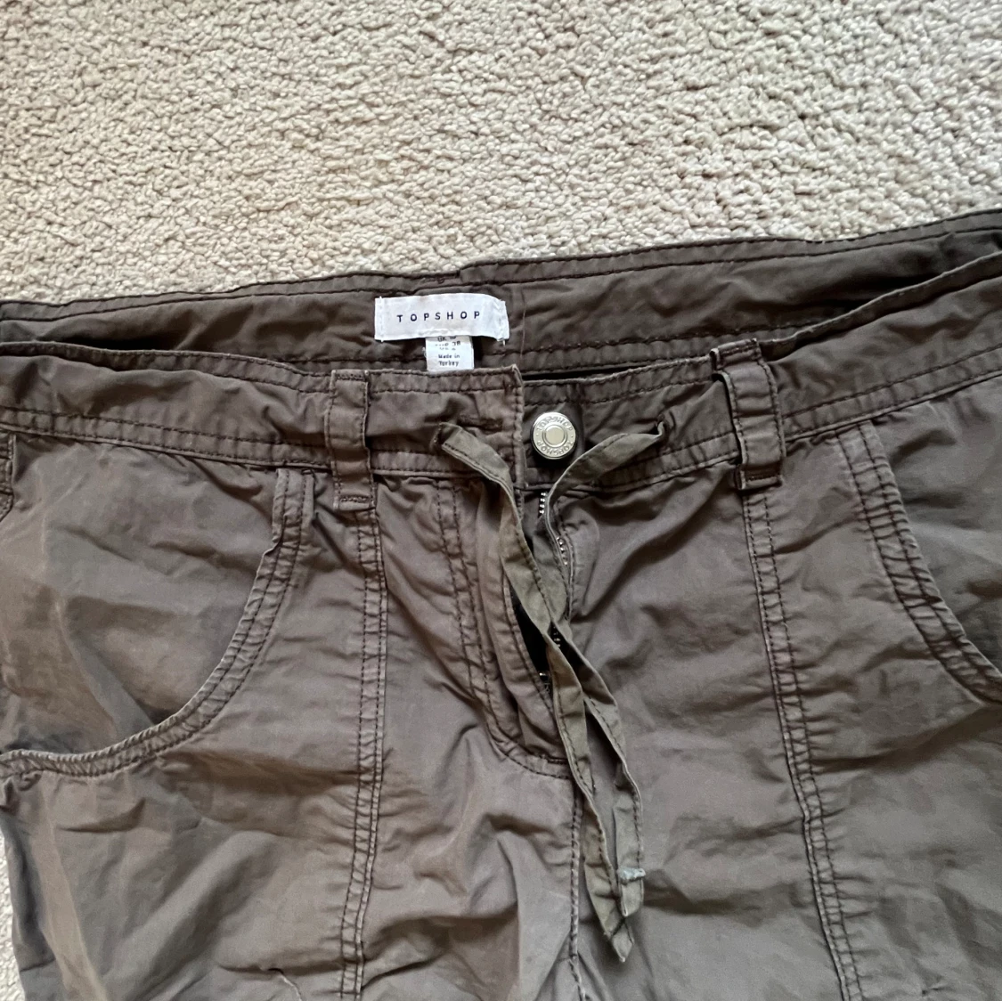 Ett par raka (väldigt) lågmidjade cargos från topshop🥵 De passar någon från storlek XS till L, då dem är lite baggy. Köpte för 400 och säljer för endast 40kr!!