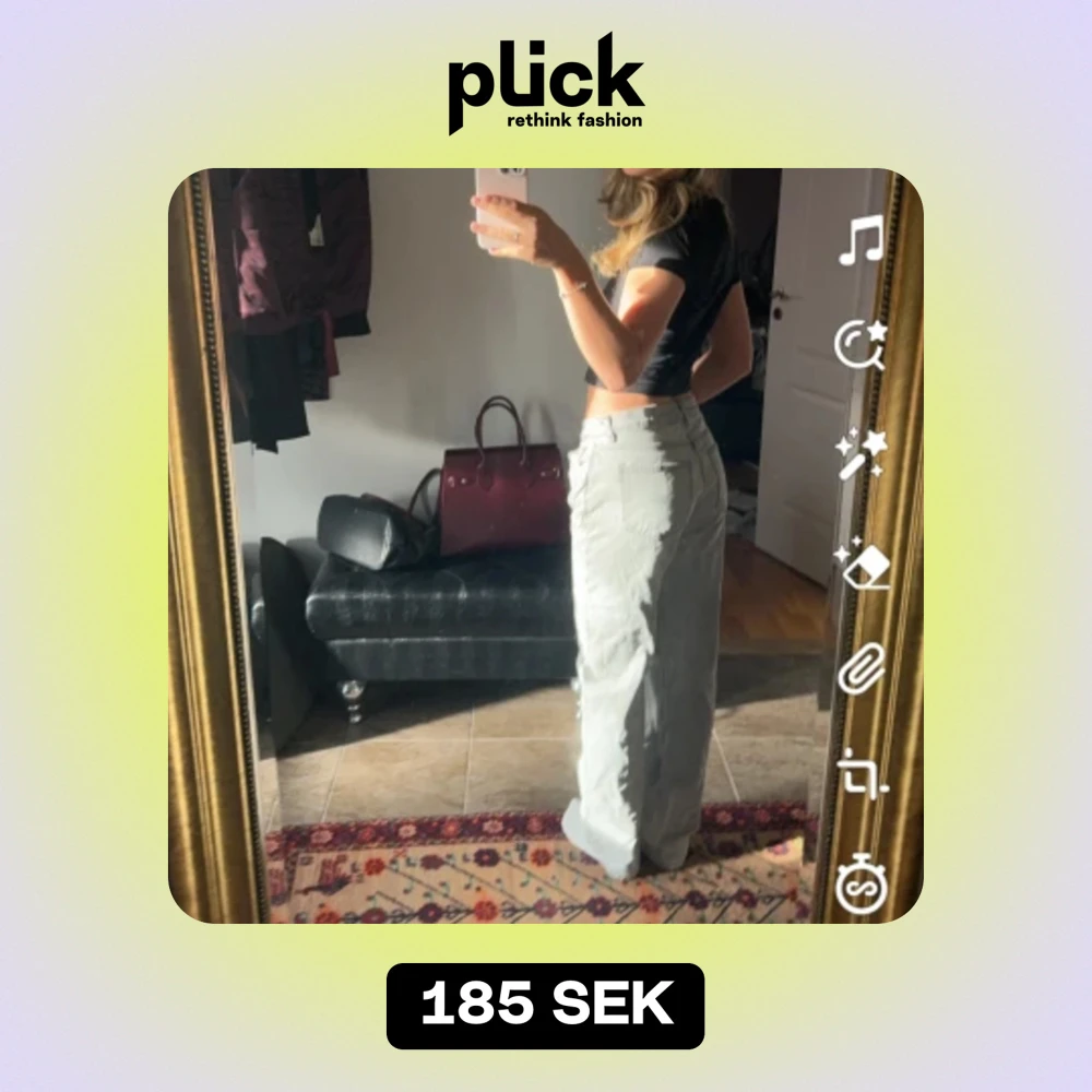 Lågmidjade jeans gråa jeans som knappt har använts (behöver strykas). Passar mig som brukar ha 36 men blir lite mer loose fit.
