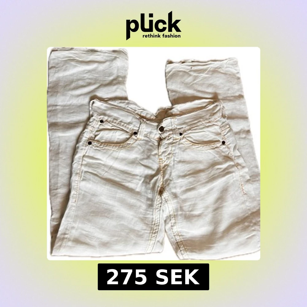 Snygga vita linnebyxor från Replay! Köpta på vinted, men aldrig använda av mig då de är för stora. Supersnygga! 🤍 De är lågmidjade