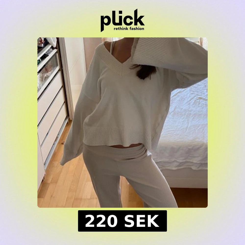 Säljer ett par ljusa ribbstickade mjukisbyxor från SOC. Byxorna har en relaxed passform med midwaist och är tillverkade i mjukt bomullsmaterial. Perfekta för chill dagar hemma eller när du vill vara extra comfy. Färgen är beige och de har en enkel, stilren look. Inte korta heller!!