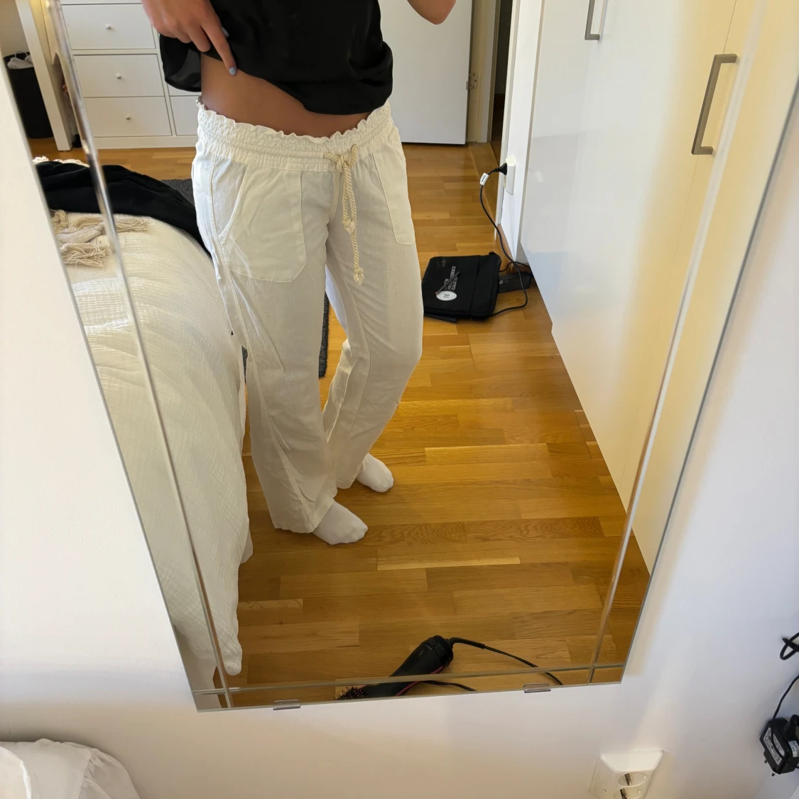 Säljer dessa slutsålda Lågmidjade Roxy linnebyxor som är i mycket bra skick! Storlek S Nypriset på de är 599kr