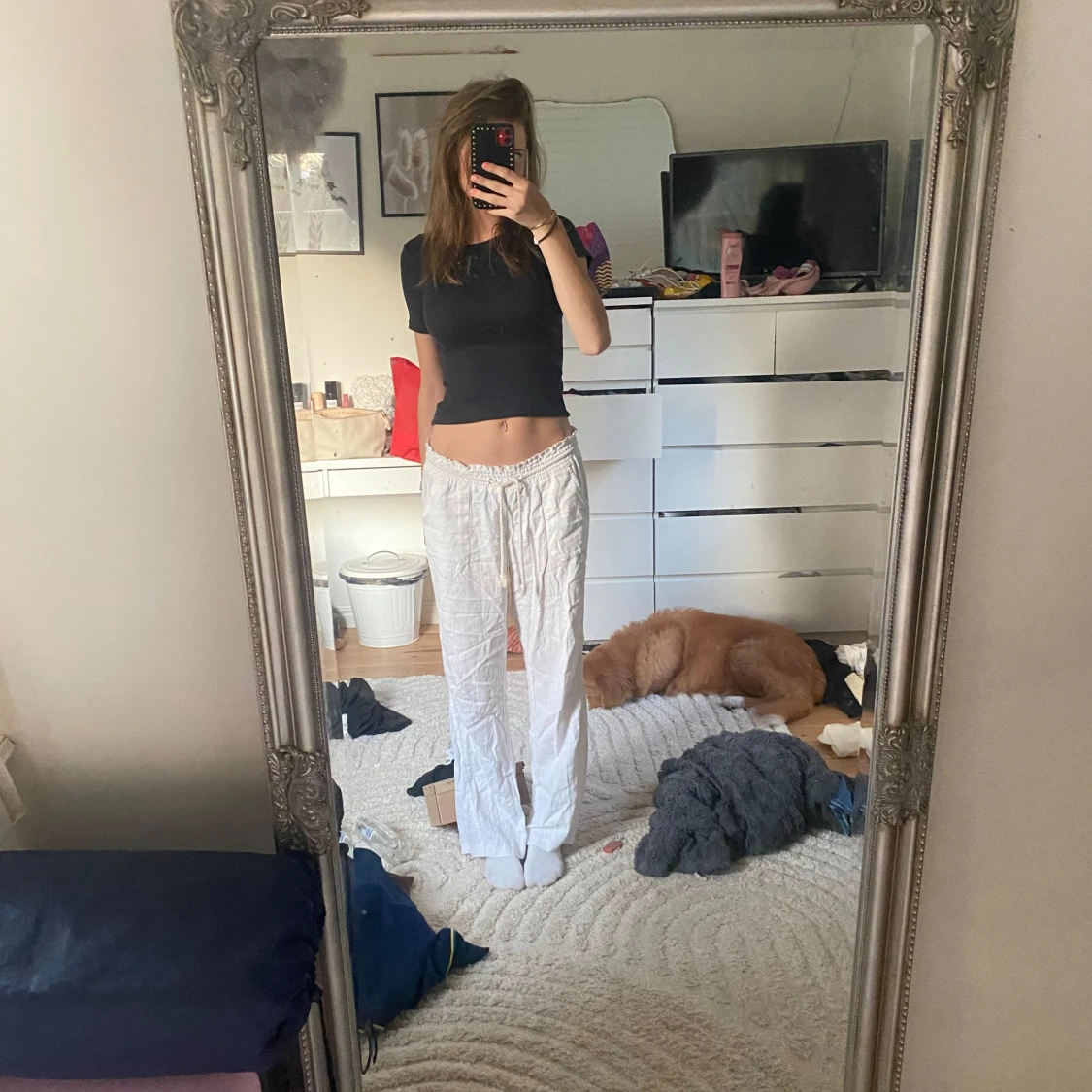 tyvärr ej strukna men annars bra skick🤍🤍 jag har S i vanliga fall men dessa är M