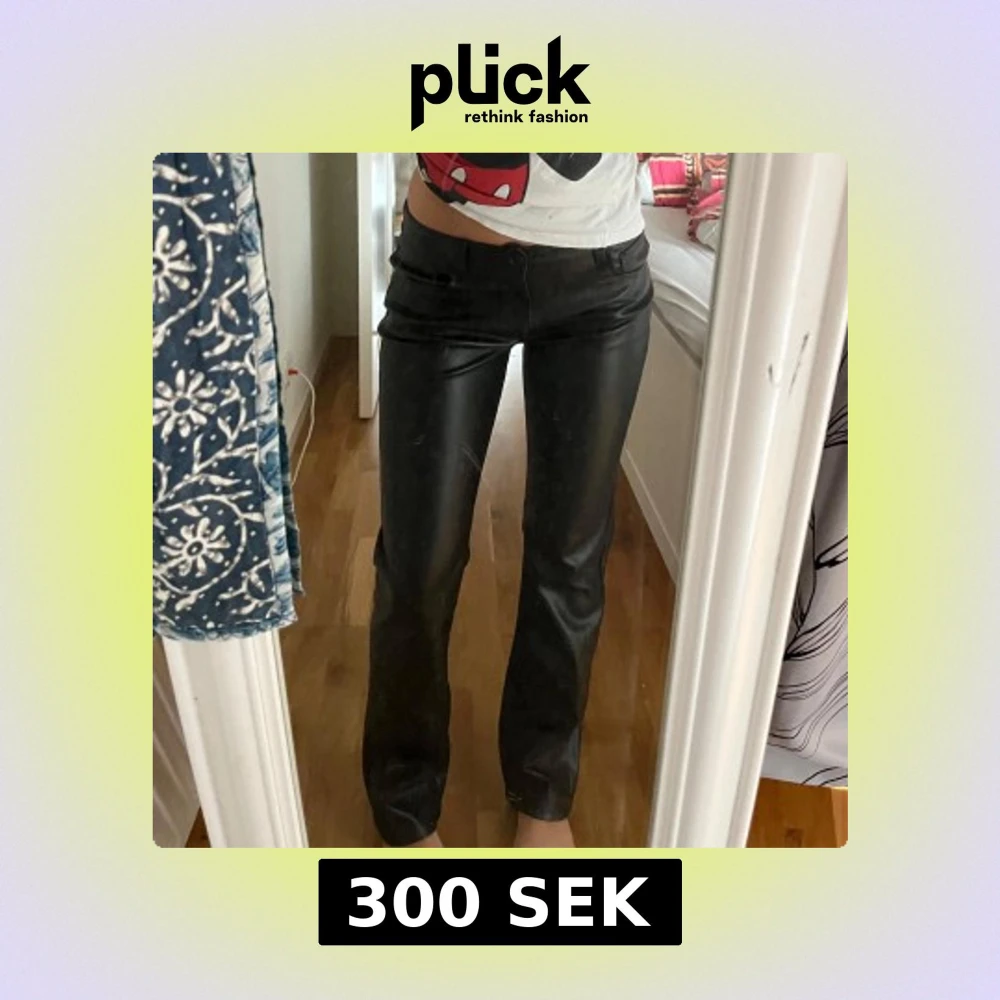 Svarta lågmidjade skinnbyxor i mycket fint skick! Har aldrig kommit till användning :)