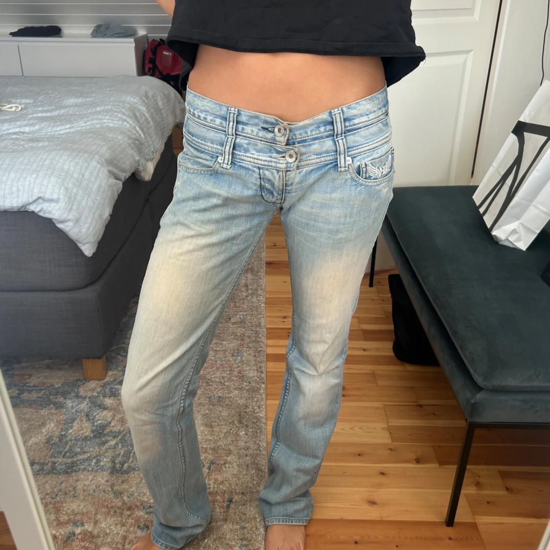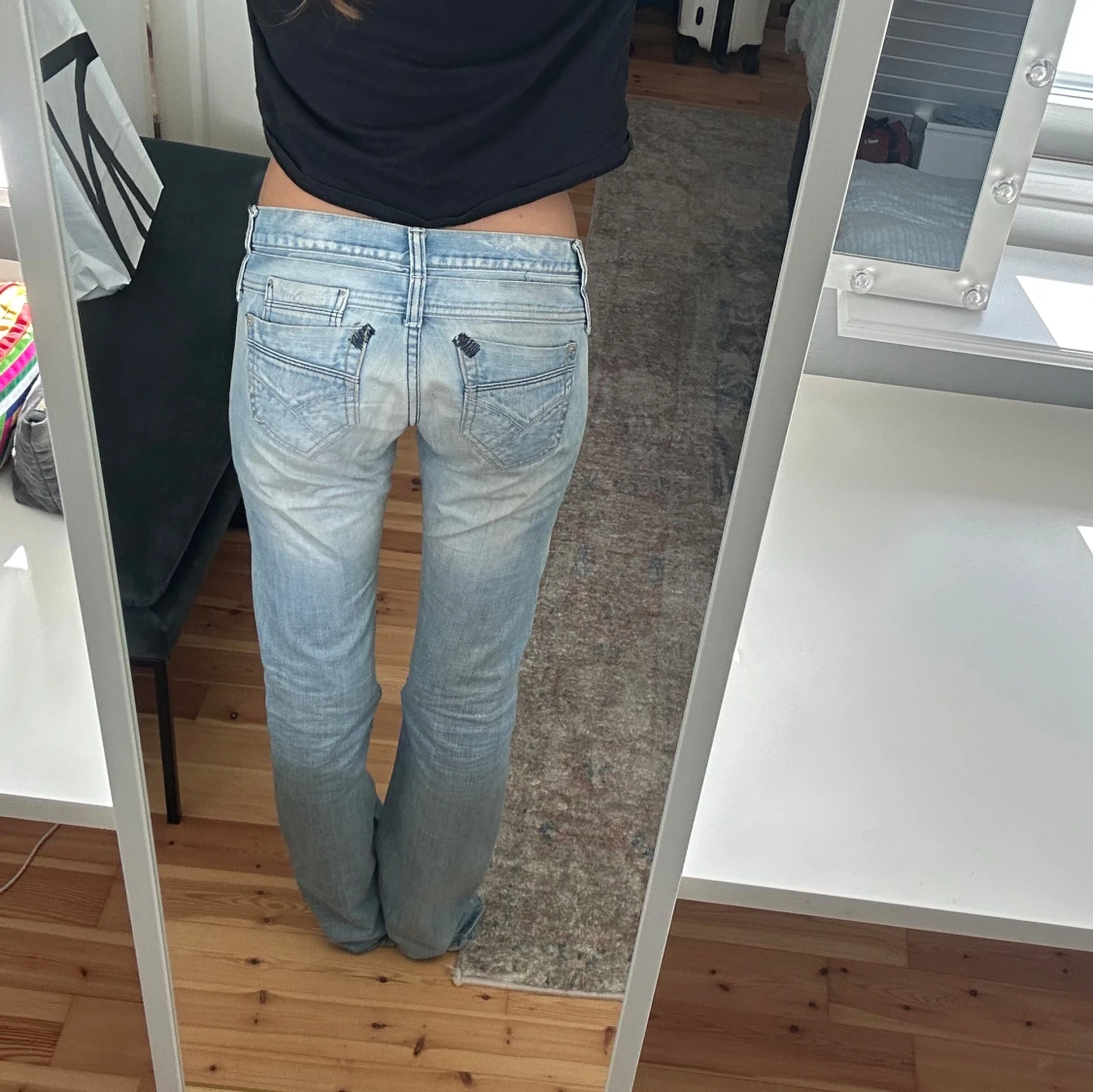 Jag säljer ett par riktigt snygga och unika jeans som jag köpte second hand i Paris! Dom har ingen lapp och vet inte vart dom kommer ifrån! Dom kommer tyvärr inte till användning längre 🩷