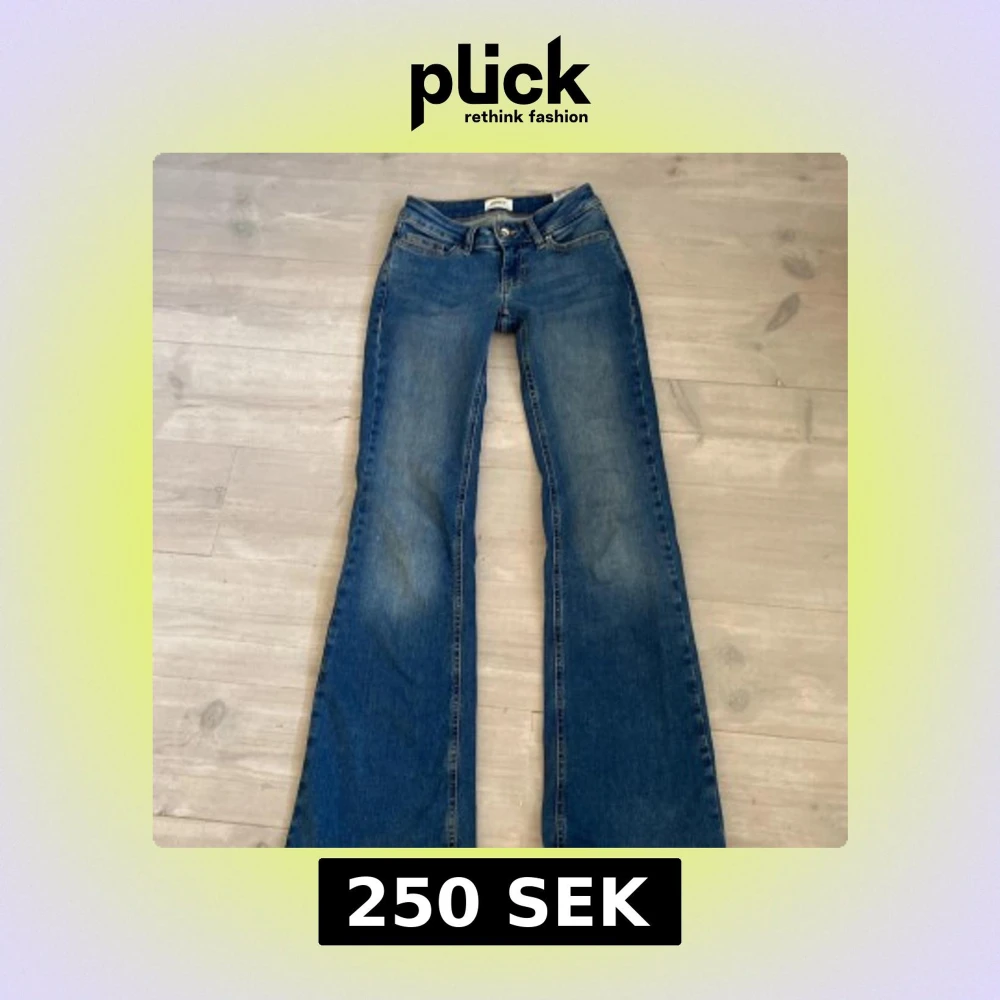 ! Vet inte riktigt storleken eftersom att jag klippte bort lappen men benen är ganska stretchiga och passar den som har 32 eller 30 på längden ! Snygga blå jeans från ONLY med klassisk bootcut-modell, lågmidjade och normal passform. Jeansen har fem fickor, dragkedja och knapp framtill samt tydliga sömmar.
