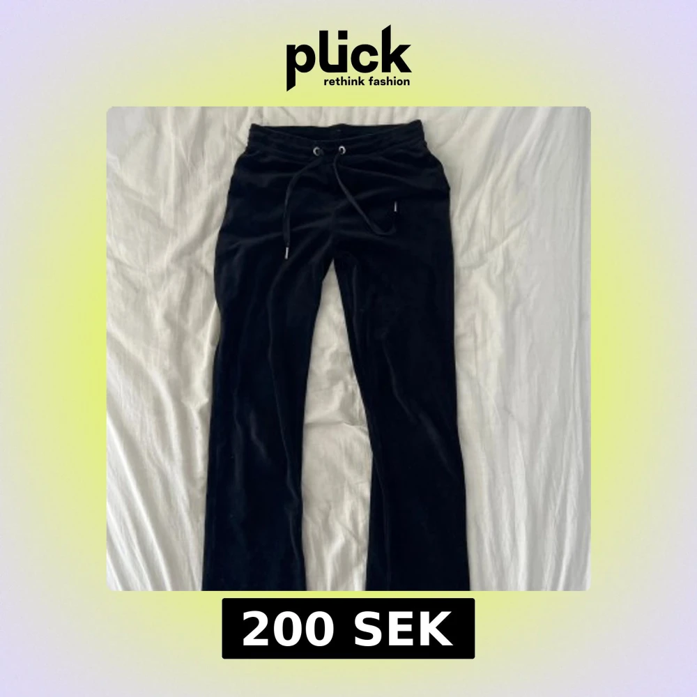 Säljer ett par svarta mjukisbyxor i mjuk velour med resår och silkesknyt i midjan. Byxorna har lätt utsvängda ben och en avslappnad passform. Kan kombineras med tröjan i samma set för 250, pris kan diskuteras🥰