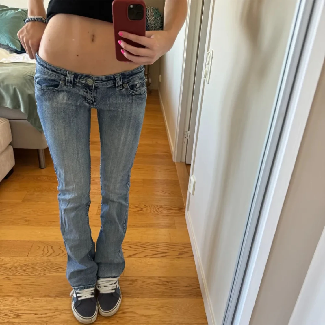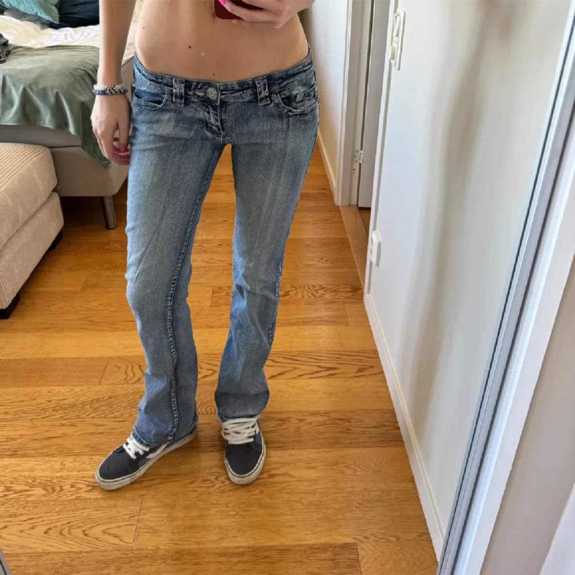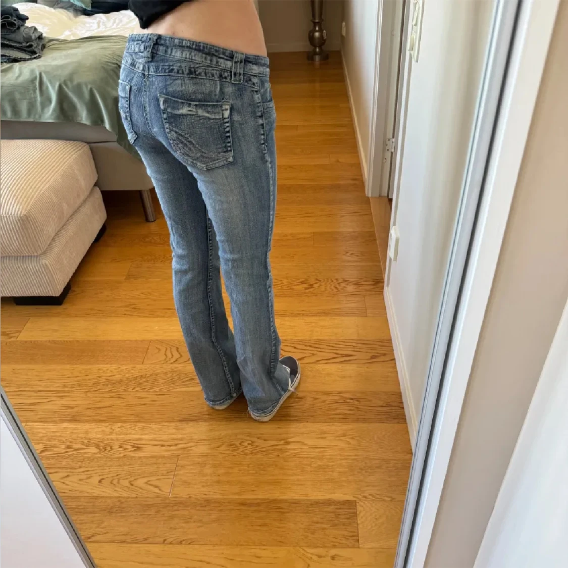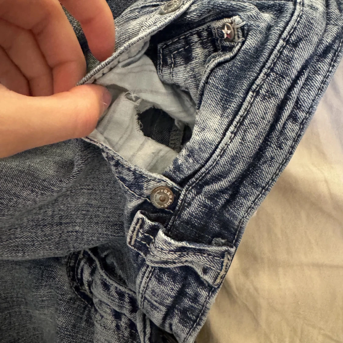 Midjemått ca 39 & innerben ca 85-86 Fint skick förutom att de har hål i framfickorna (se sista bilden), men inget som syns! Supefina men kommer ej till användning då de är för stora, därav är alla bilder förutom sista lånade!