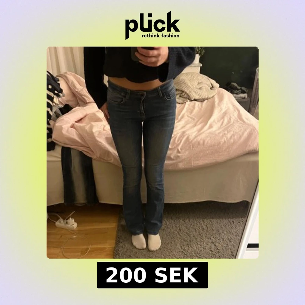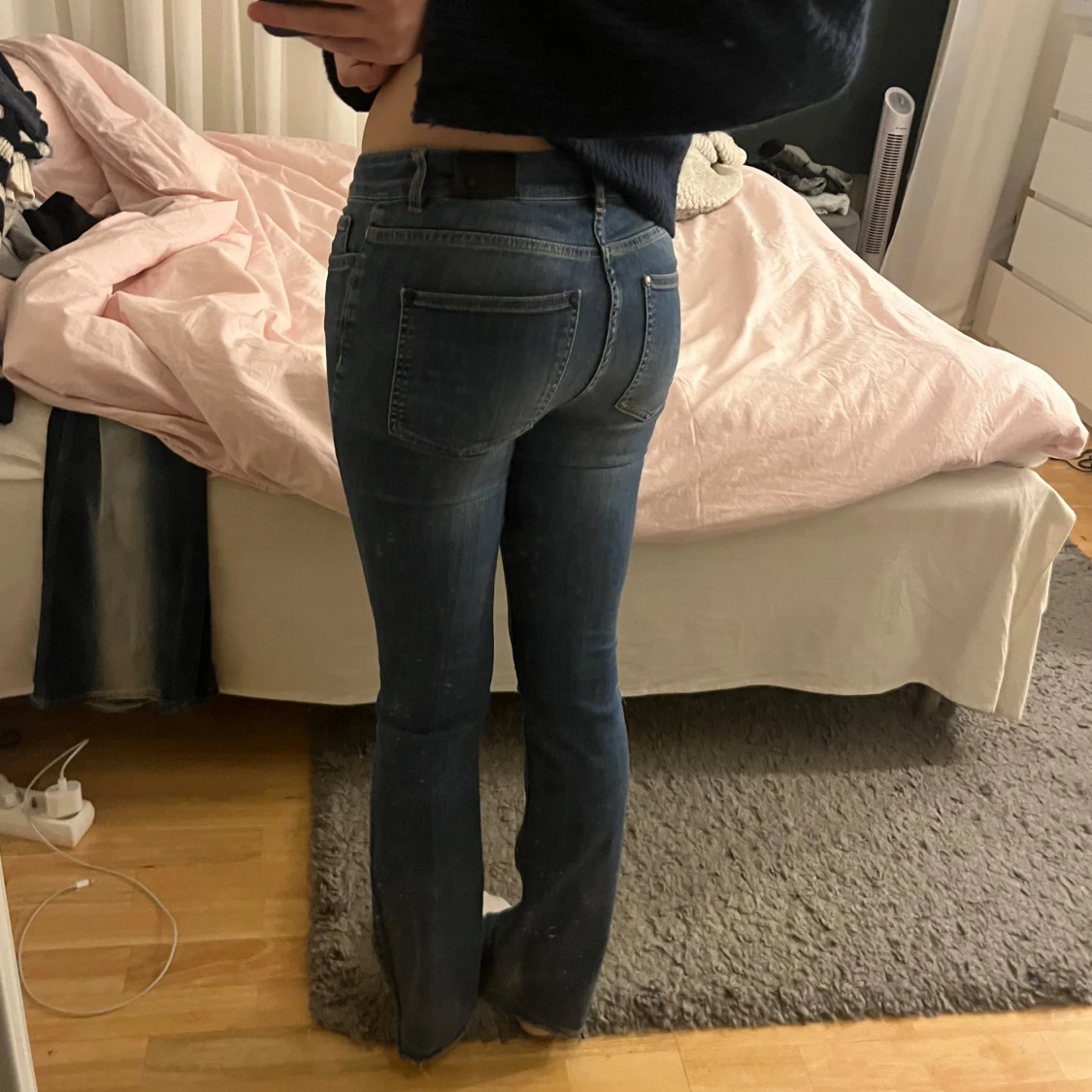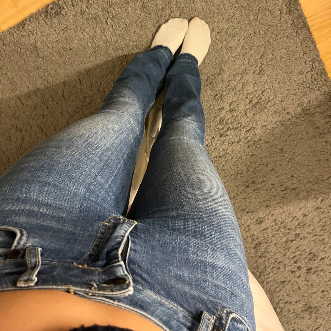Snygga blå bootcut jeans med en klassisk femficksdesign. De har en bekväm passform och är perfekta för en avslappnad stil. Jeansen har en dragkedja och knapp framtill. Skriv om ni har några frågor!💞