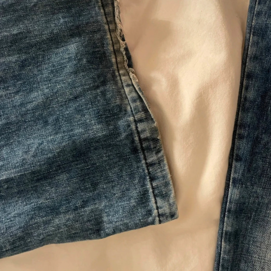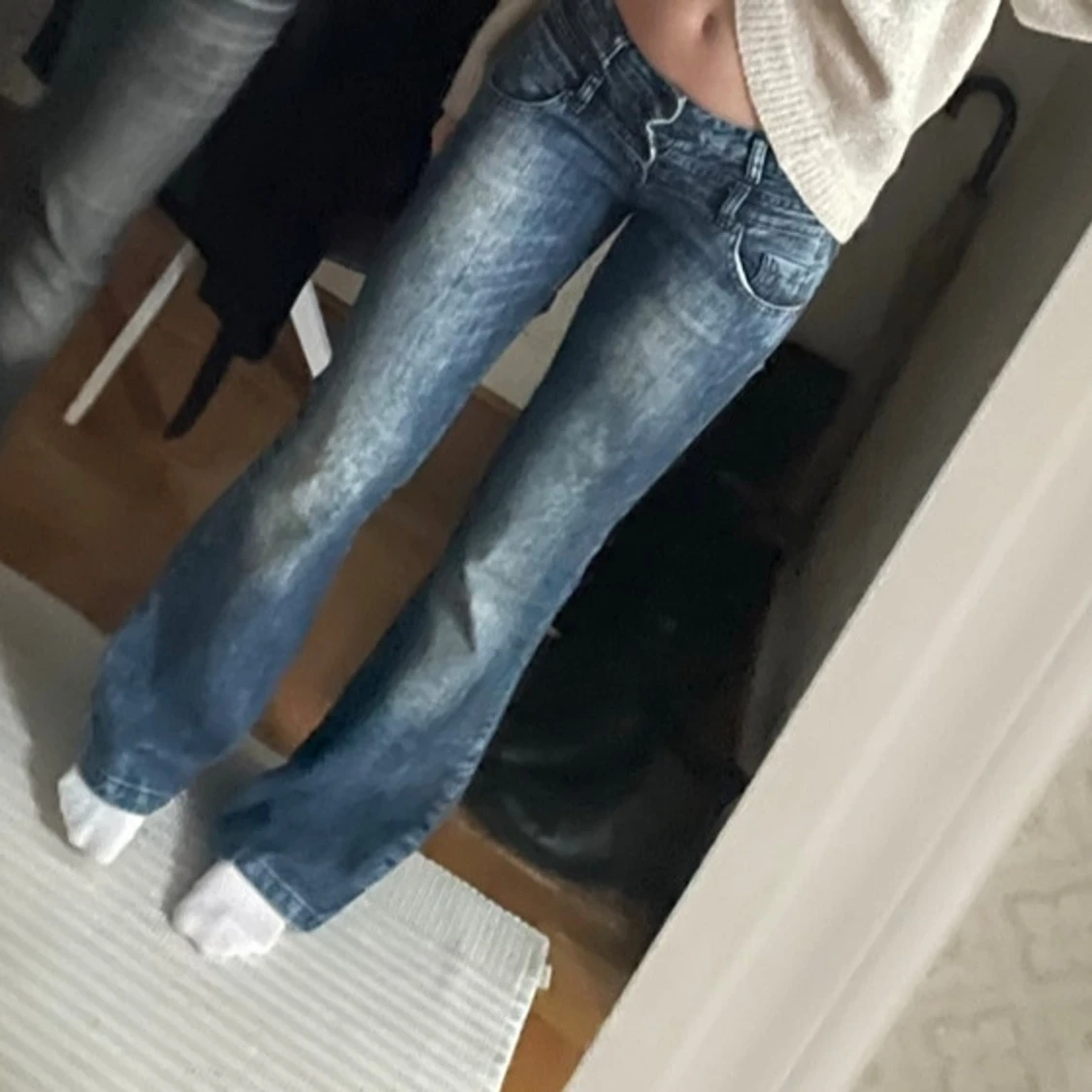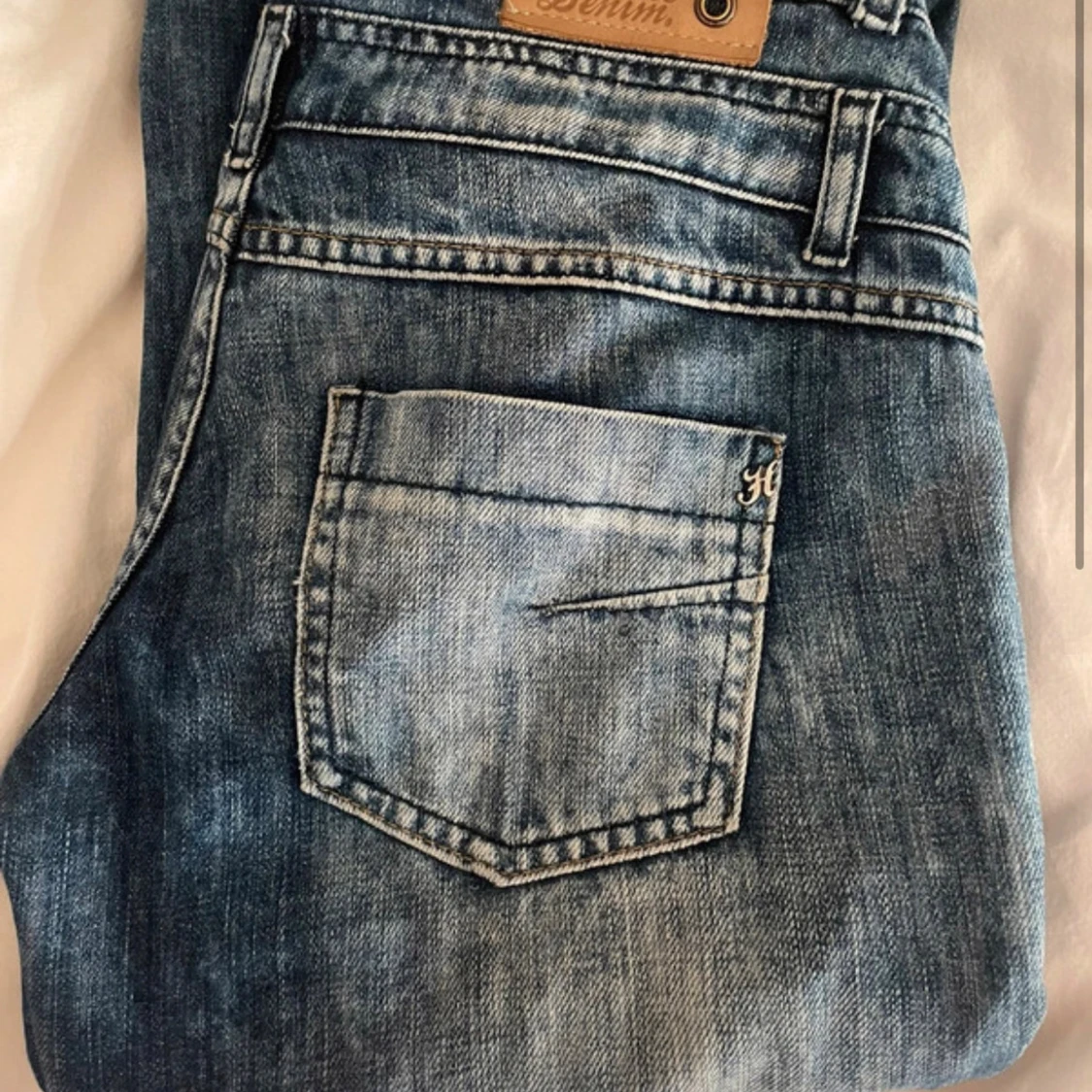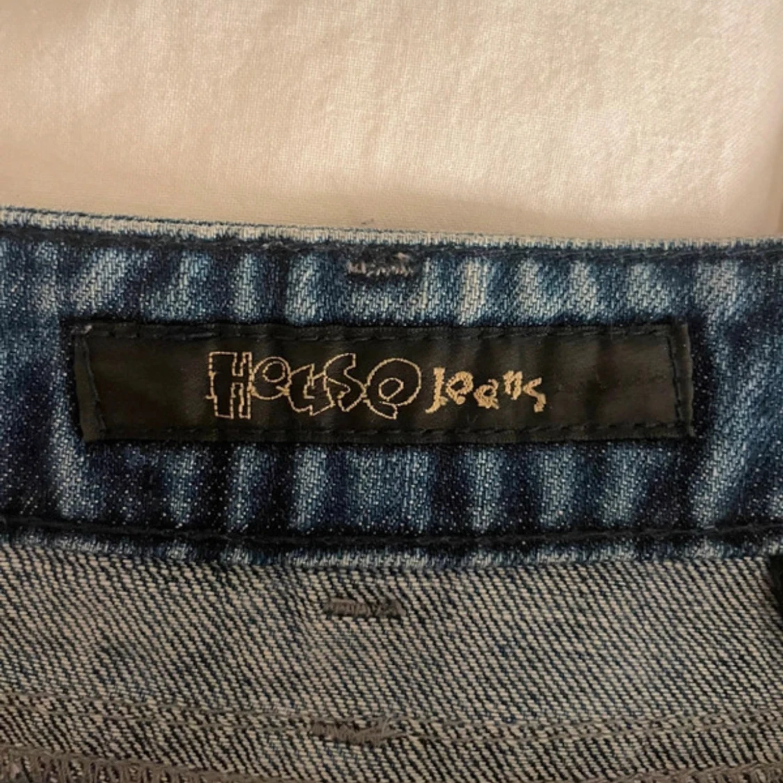 Jag säljer ett par jättesnygga lågmidjade bootcut jeans som tyvärr är för små för mig. Märket är house jeans. Dom är lite slitna längst nere vid benen men har inga andra defekter. Det står w27 i dom vilket jag tror är storleken men annars står måtten här. Tvättas innan dom skickas. Midjemått(rakt över)- 40 cm och innerbens längd 82 cm.