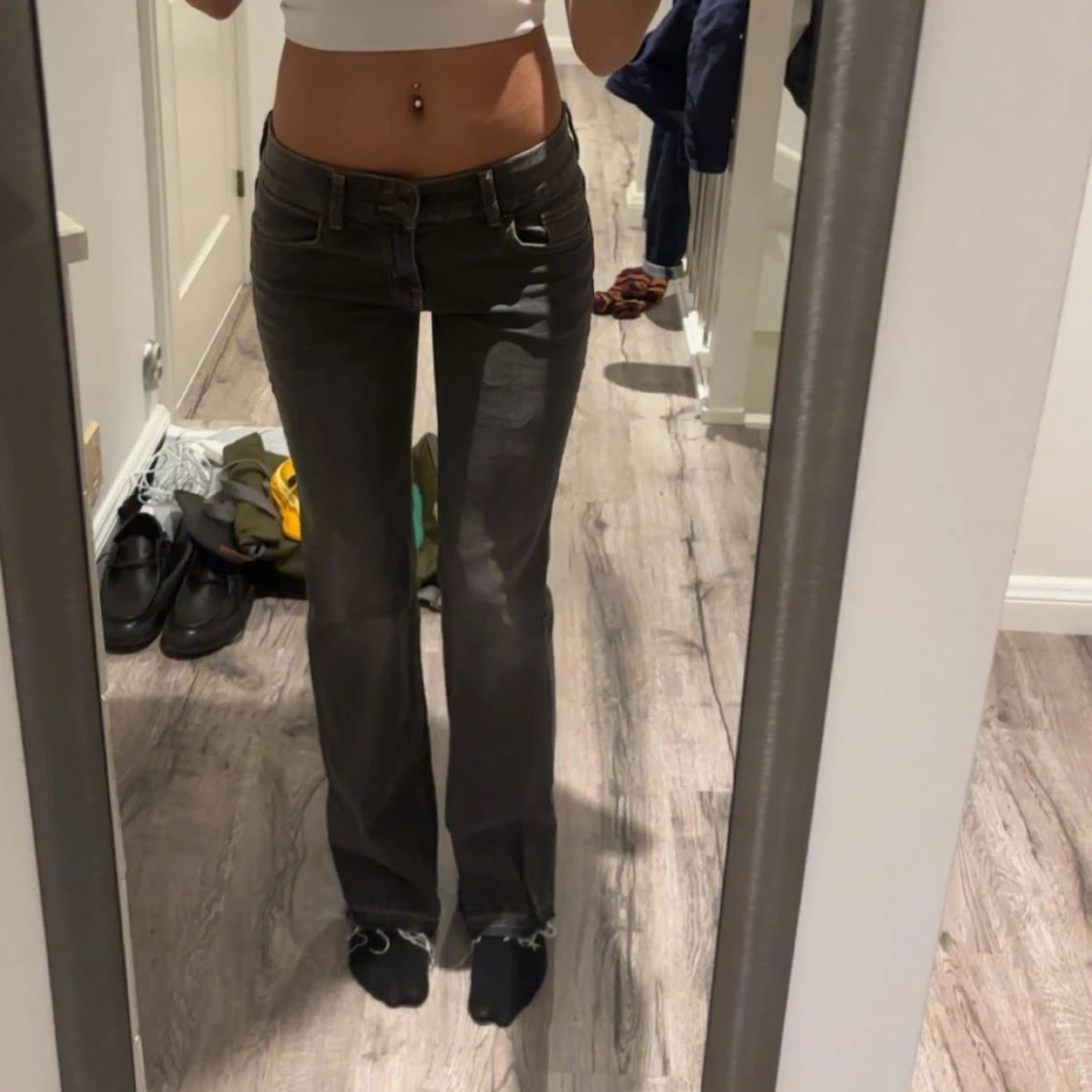 Ass snygga lågmidjade vintage jeans från hm, liknar replay jeansen. Perfekt i längd på mig som är 177cm, stretch i midjan.