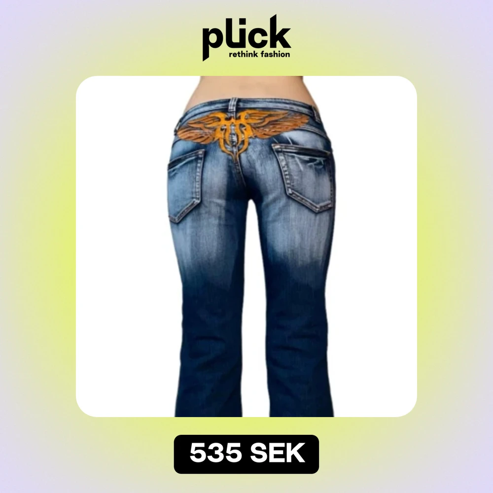 Jättesnygga lowrise bootcut jeans med jättecoola detaljer bakifrån från Revers, står strl M på lappen men de är mer som en XS/S, jeansen är ganska stretchiga❤️// midja 34cm(+stretch), längd 95cm, innerbens 76cm