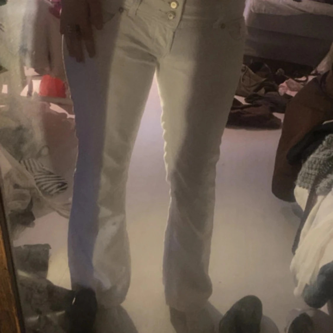 lågmidjade vita jeans