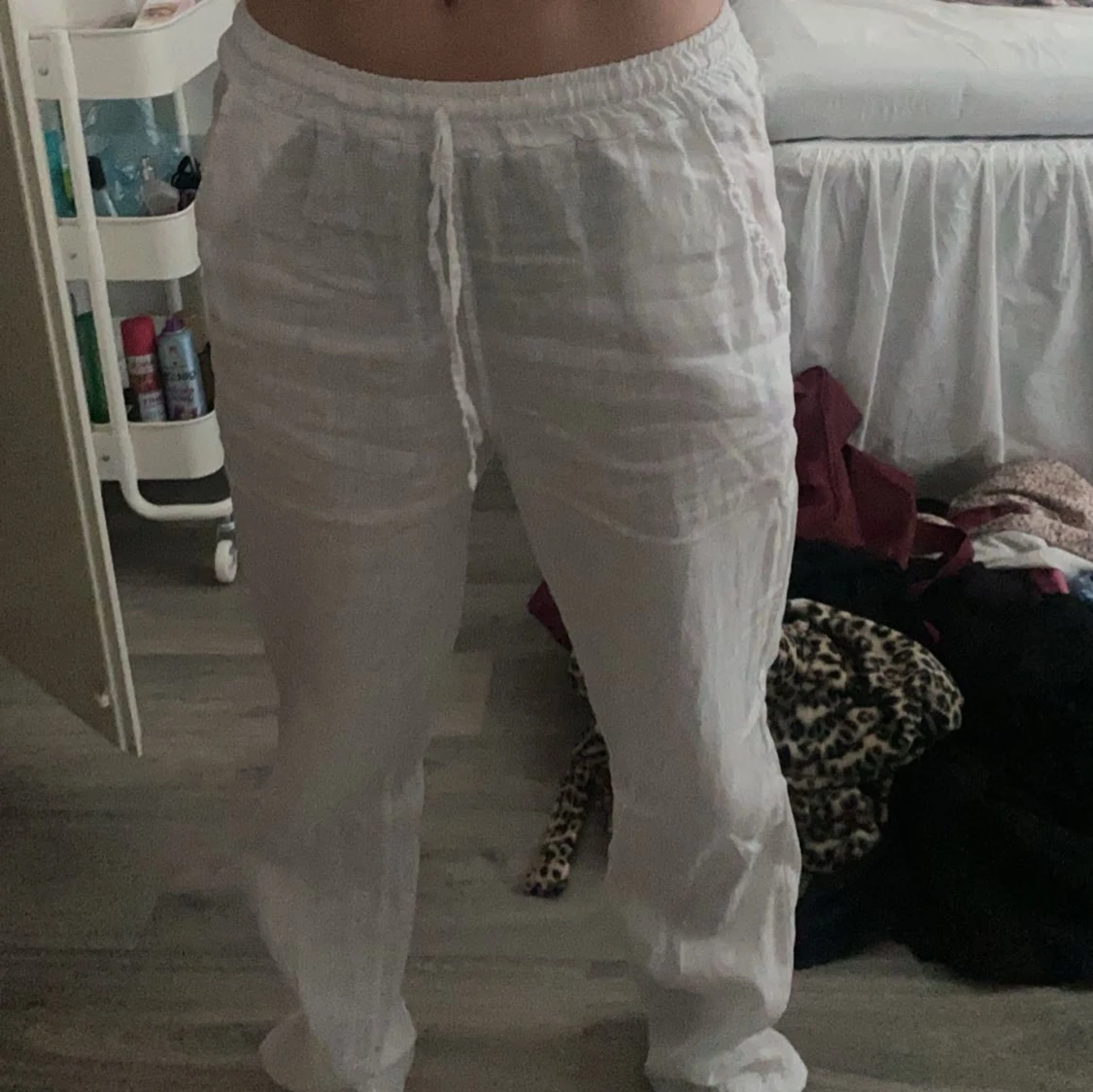 Lågmidjade vita linnebyxor från DesignBySi i strl xs/s