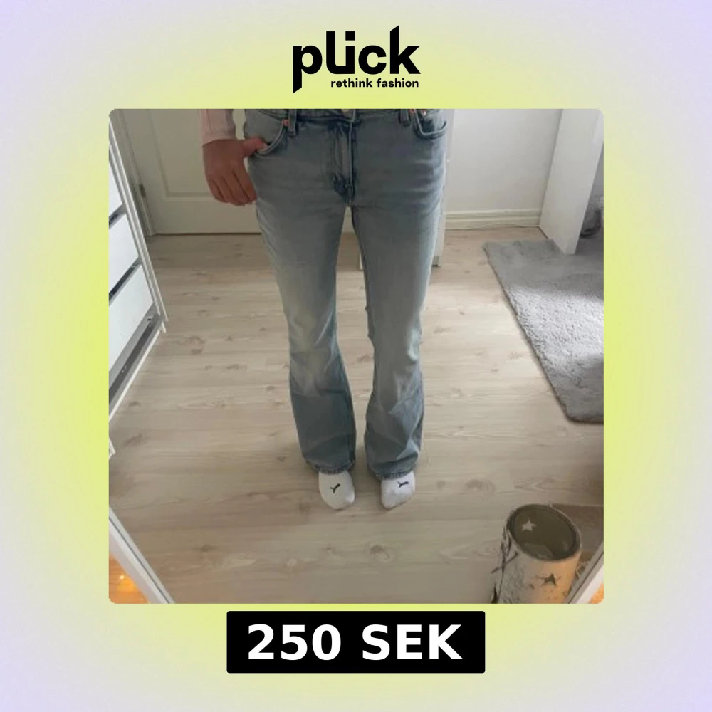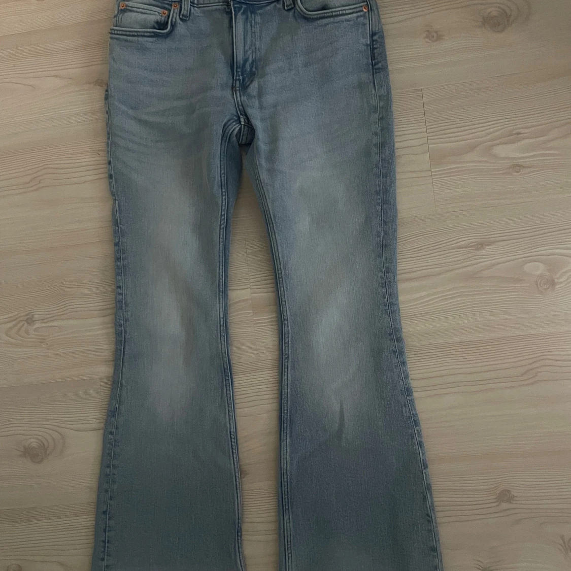 Säljer mina oanvända weekday jeans då de är för stora. Jättefina och sköna! Står ingen storlek men skulle gissa på 28/38/M. Skriv för mått💕
