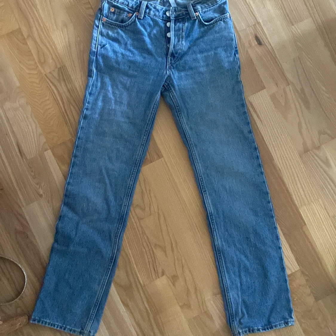 Jag säljer ett par blå lågmidjade jeans från weekday. Säljer för 200 kronor, använt några gånger. Pris kan diskuteras. Skriv för fler bilder eller frågor ❤️