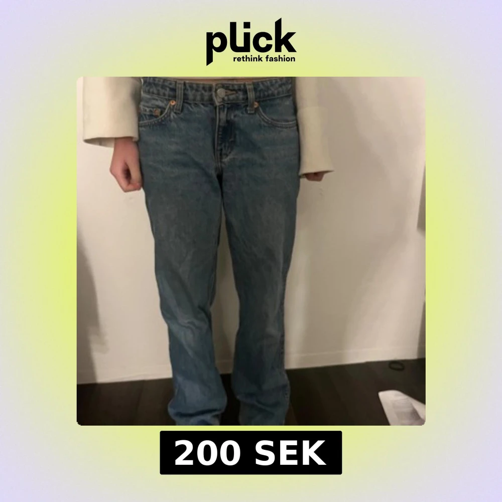 Klassiska blå weekday jeans med rak passform och normal midja. Jeansen har fem fickor, knappgylf och är tillverkade i robust denim. Perfekta för en avslappnad och tidlös look.