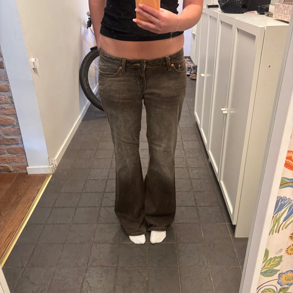 Säljer ett par bruna bootcut jeans med låg midja. Använda vid 1 tillfälle. I weekdays nova modell.