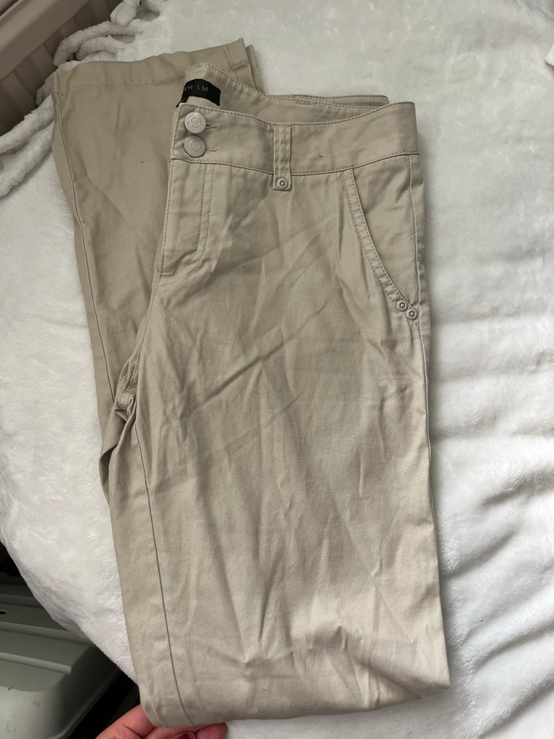 Beiga byxor i storlek 38 men passar även 36. Raka i modellen och aldrig använda.