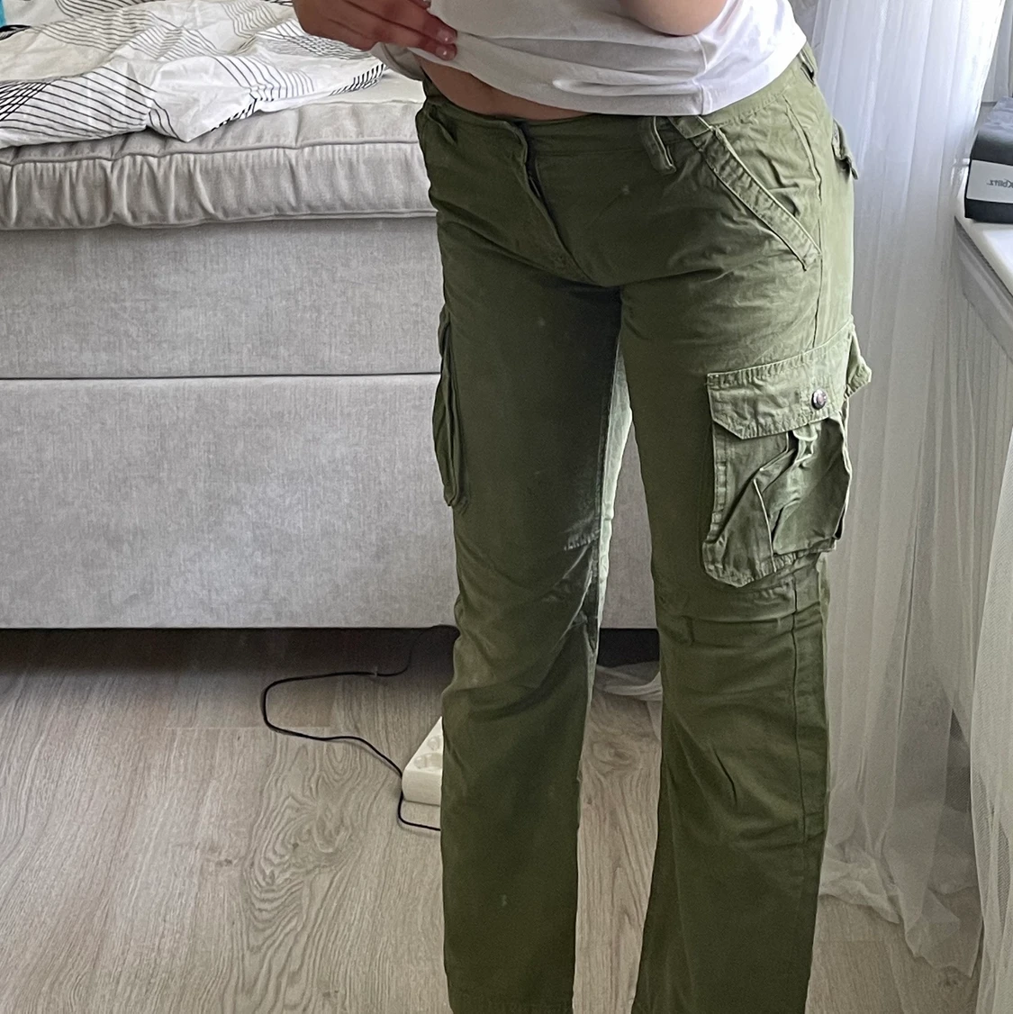 Säljer dessa väldigt fina lågmidjade cargo pants 100kr+frakt. Lite korta på mig som är 160 så passar nån som är kortare, skulle säga 152-158.💞