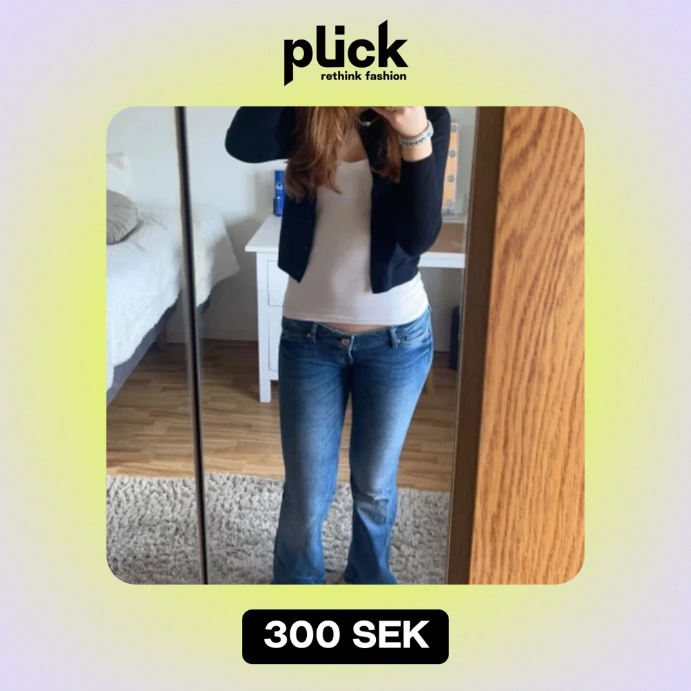 Väldigt lågmidjade jeans! Säljer då dom sitter lite tajt! Midjemått: 38cm Innerbenlängd: 79cm! Passar mig som är runt 170💕