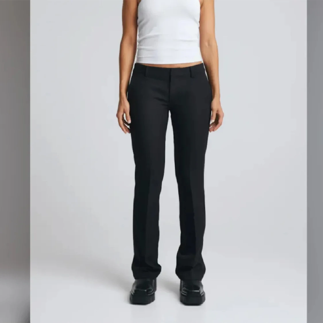 Jätte fina lågmidjade kostymbyxor som tyvärr var alldeles för korta på mig 😕 dem är i modellen petit och var därav korta på mig som ungefär är 165cm 💗 endast prövade!