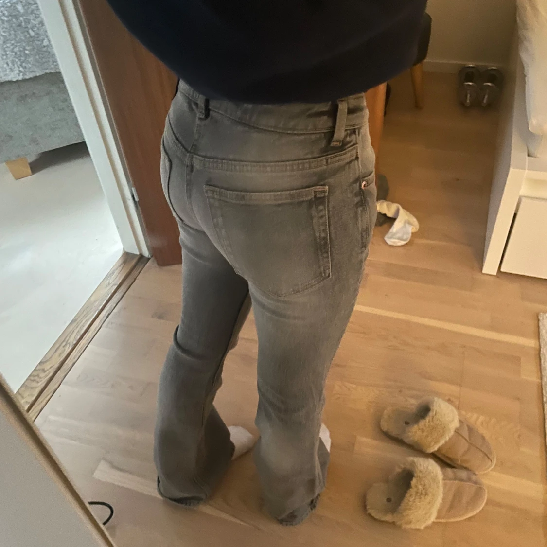 Snygga grå bootcut jeans med låg midja. Splitternya från Weekday i storlek 26/32