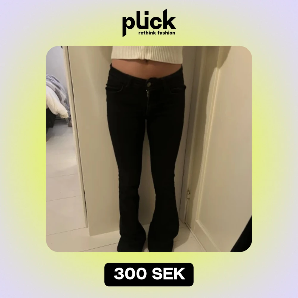 Jättefina Lågmidjade svarta bootcut jeans i storlek 34.